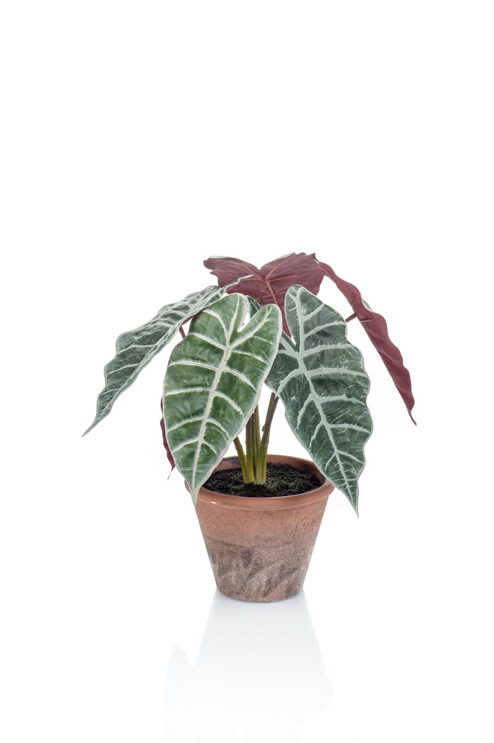 Artificial Alocasia Sanderiana GARCIA, terracotta pot, green-white, 12"/30cm