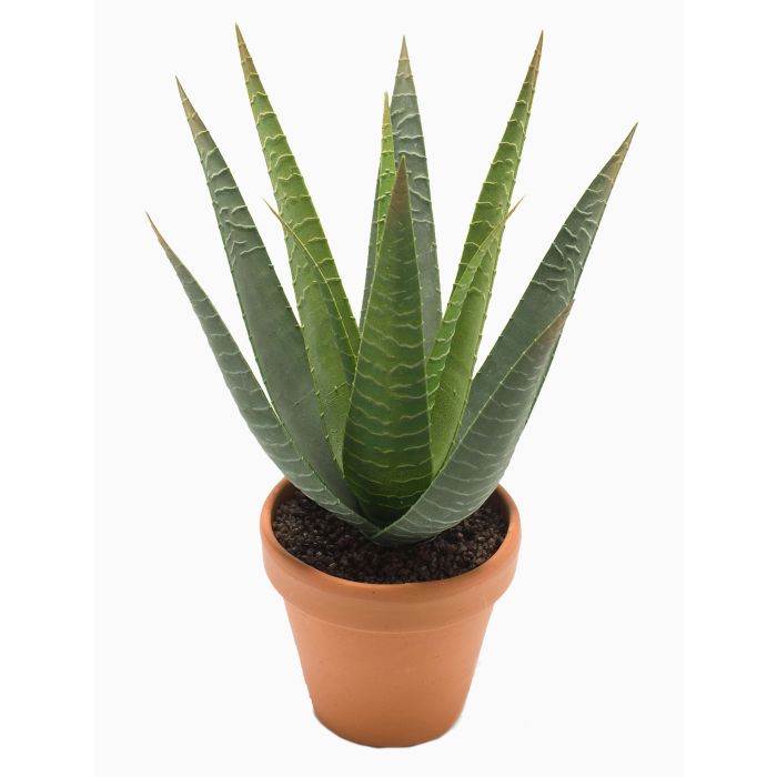 Artificial aloe variegata MARTINEZ, terracotta pot, green, 12"/30cm, Ø7"/17cm