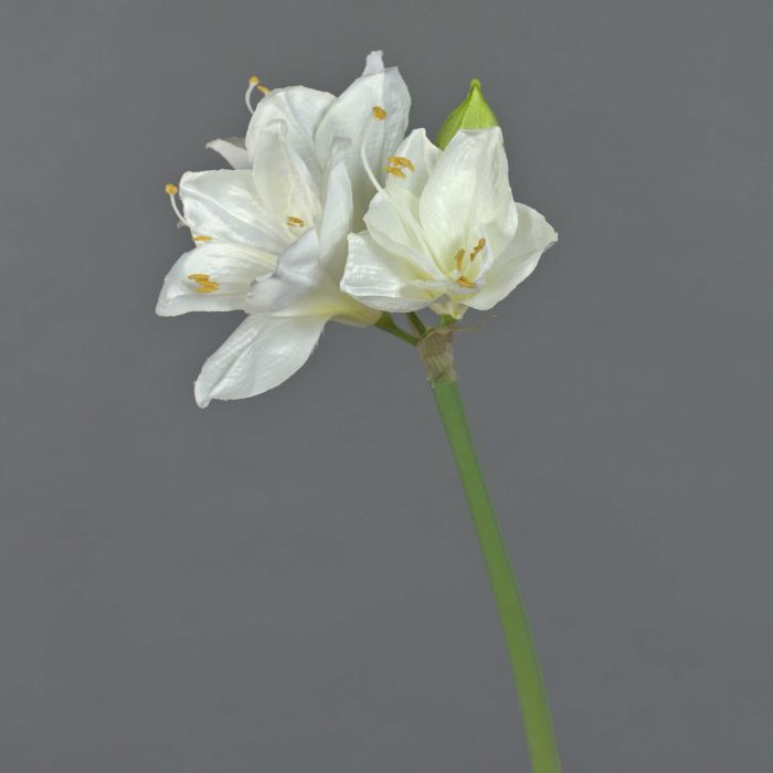 Artificial amaryllis BENITA in colour white with a bud. The artificial flower measures approx. 22"/55 cm in length and will fit perfectly into a vase e.g. on your chest of drawers.