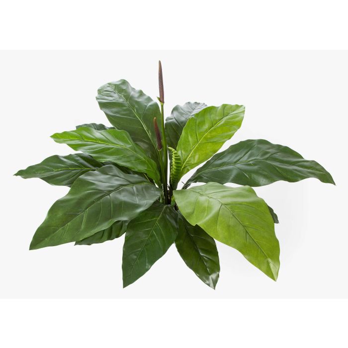 Plastic laceleaf HAILEY with 2 buds and 17 leaves, also known as flamingo flower and tailflower the faux plant is supplied in a cement pot for easy installation in your cachepot.