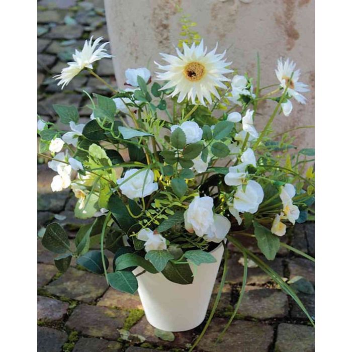 Artificial arrangement of gerberas and lathyrus JONNA, decorative pot, white, 16"/40cm