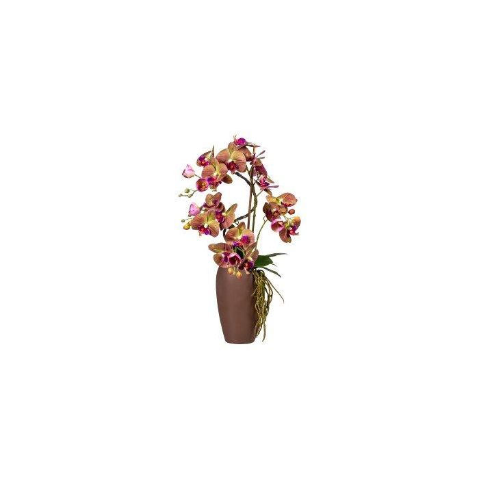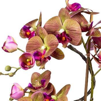 Artificial arrangement of orchid and corkscrew willow RASTIA, ceramic vase, roots, fuchsia-green, 28"/70cm