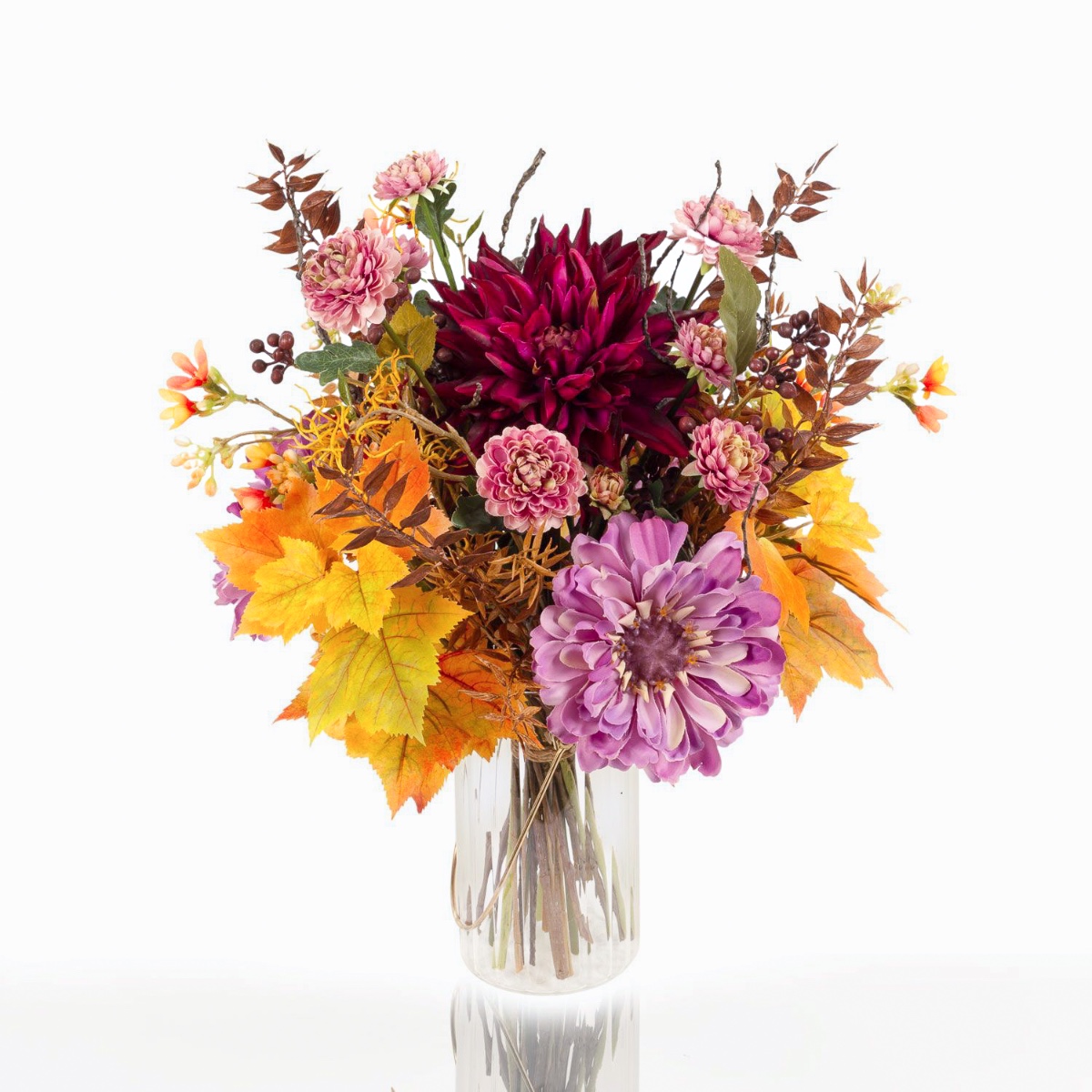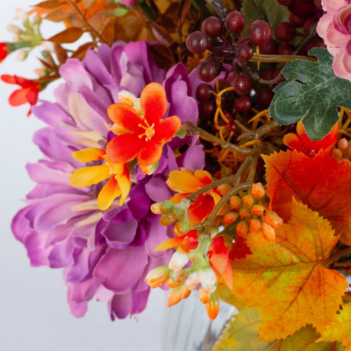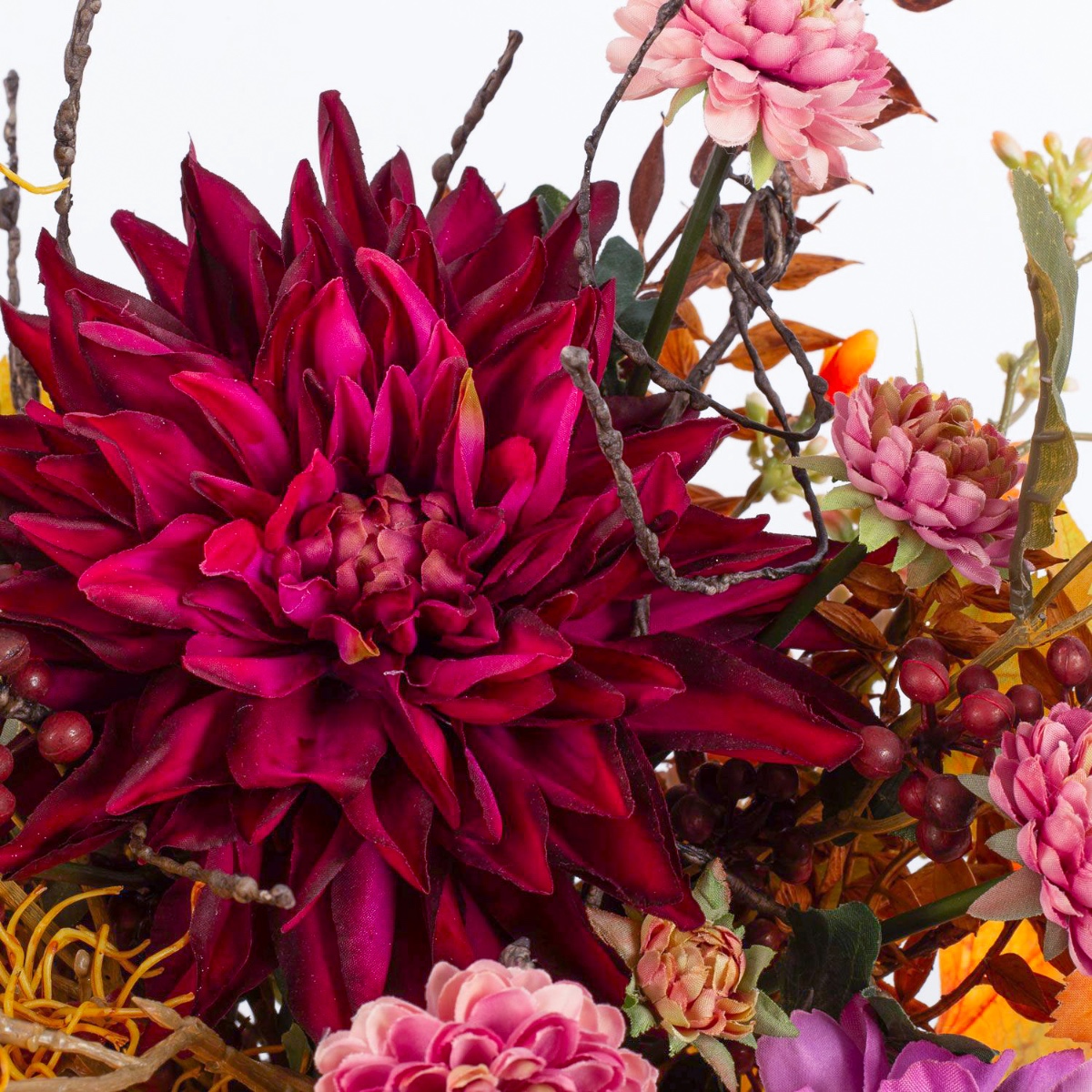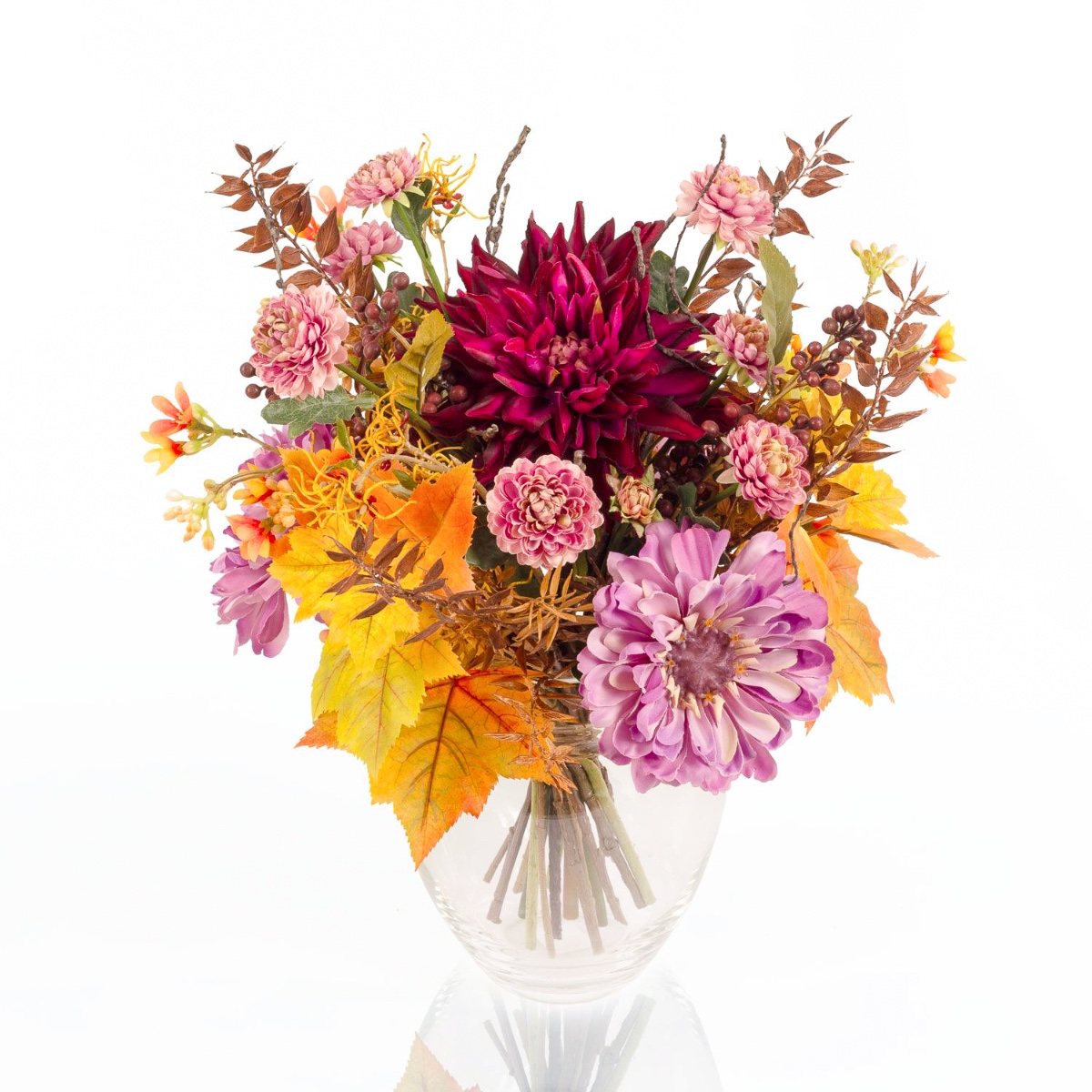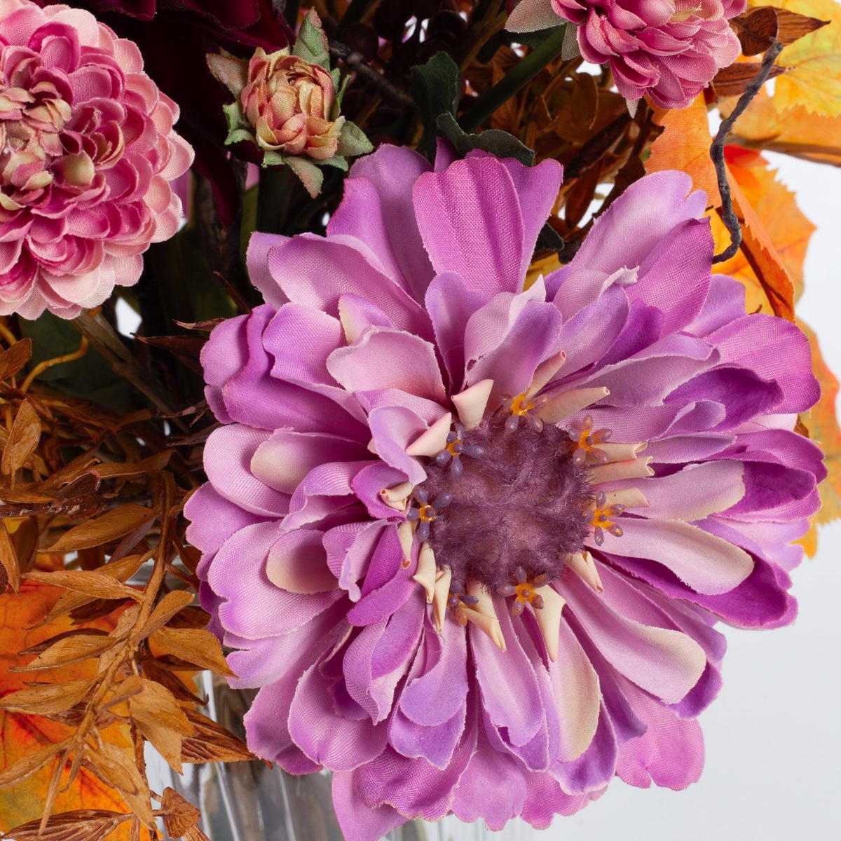 Artificial autumn bouquet KALENA, dahlia, zinnia, violet-orange, 18"/45cm, Ø16"/40cm
