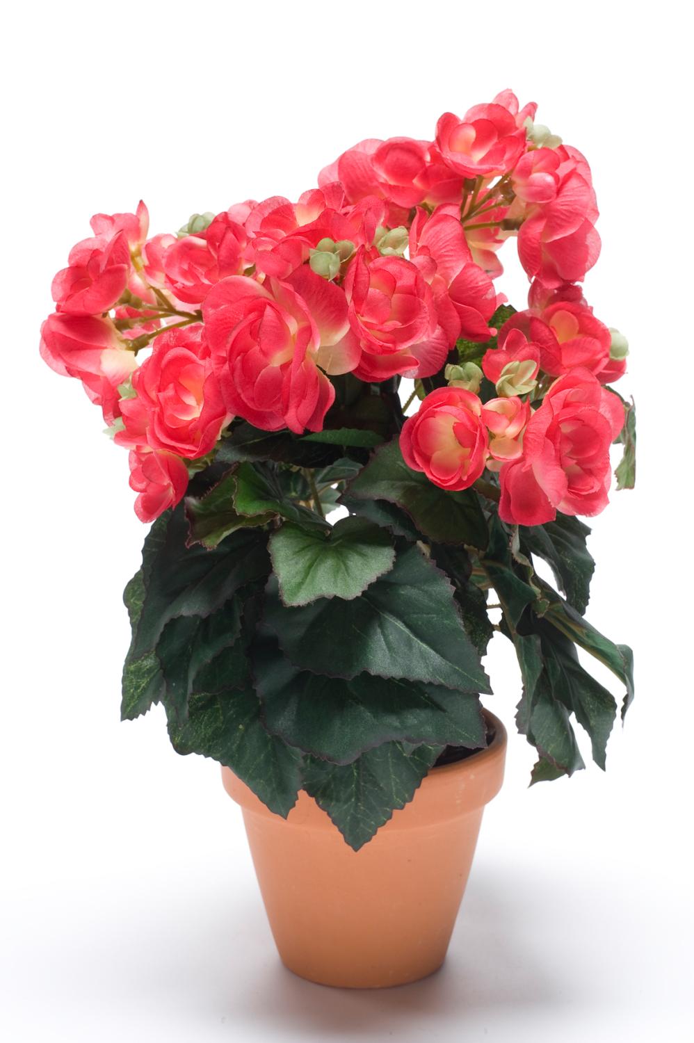 The fake plant begonia CATINKA in colour pink is fixed in a planter and has a height of approx. 12"/30 cm.