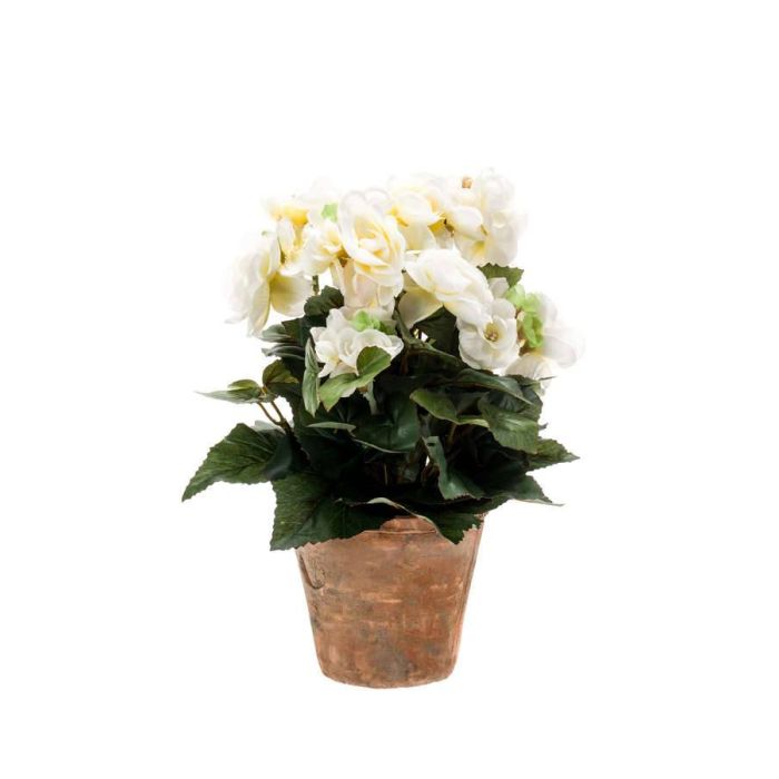 Artificial begonia DOBRADA in terracotta pot, cream, 10"/25cm