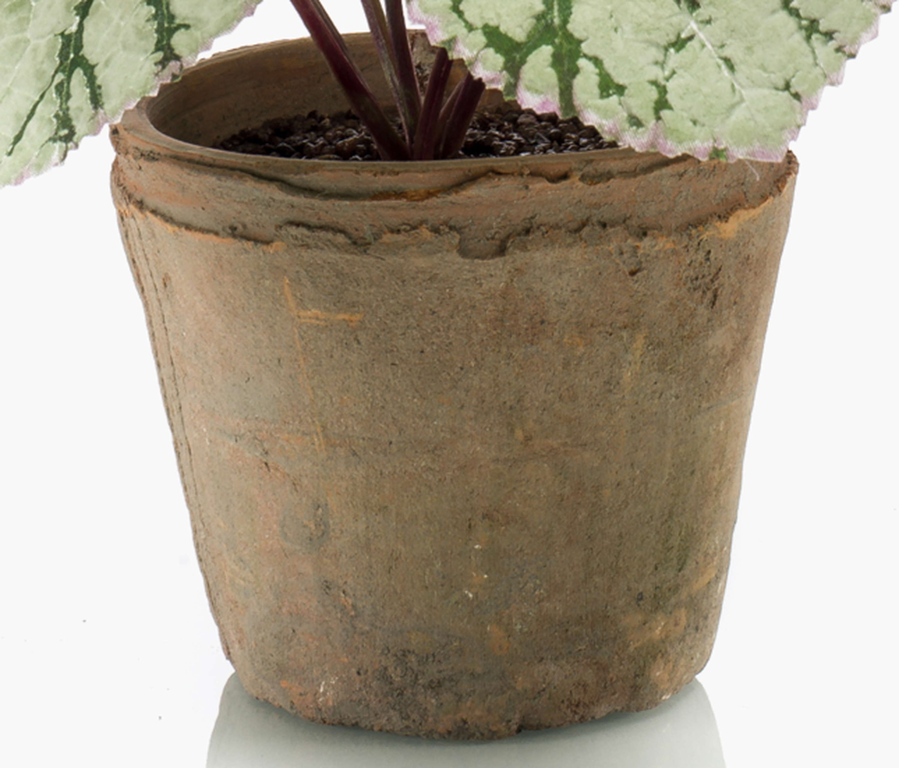 Artificial begonia rex MEIRA in terracotta pot, green-grey, 10"/25cm