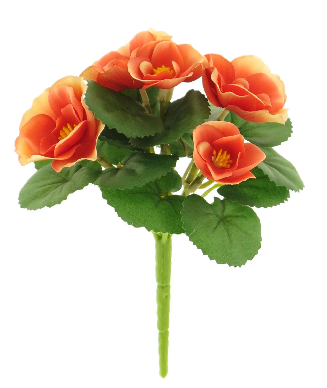 Artificial begonia ZILING on spike, orange, 7"/18cm