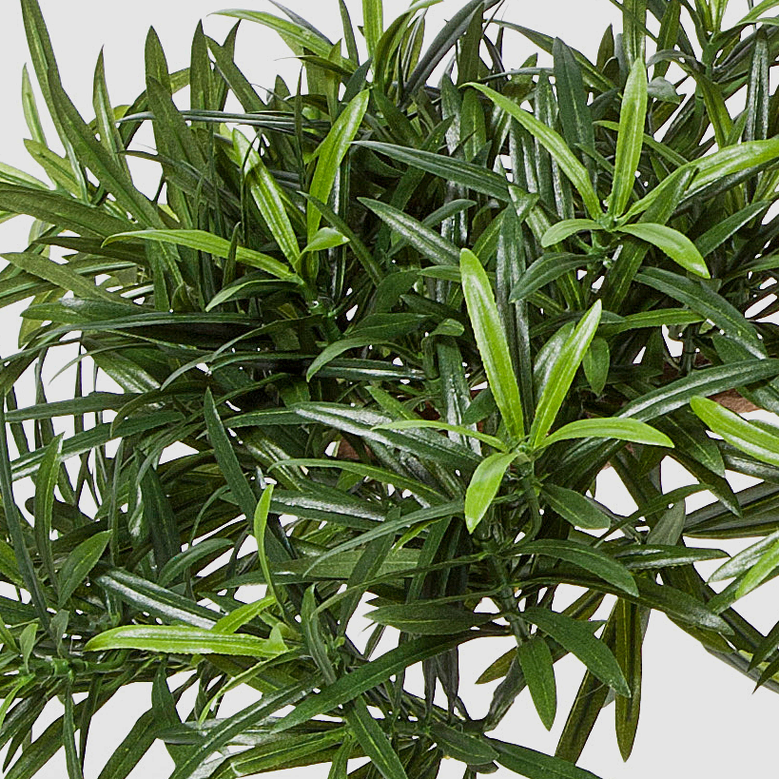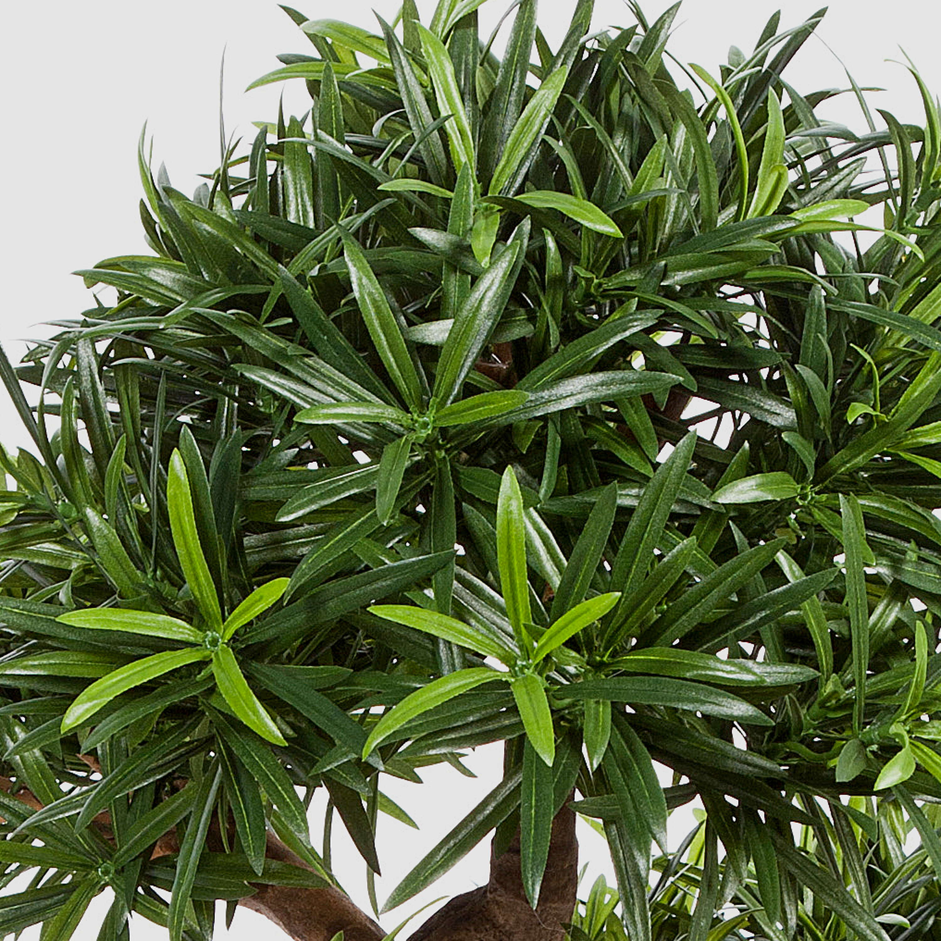 Fake Bonsai Podocarpus MASAO in classy high-gloss planter. The artificial Bonsai Tree has 3,830 leaves and a total height of approx. 33"/85 cm.