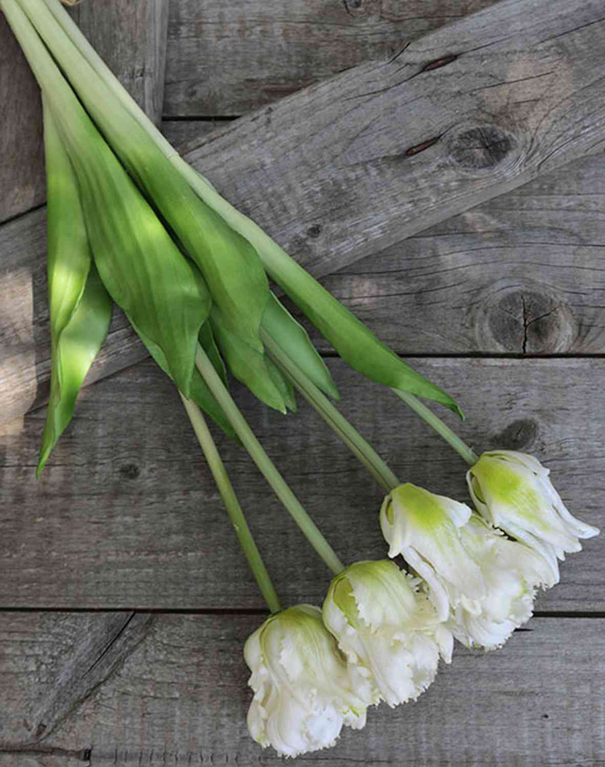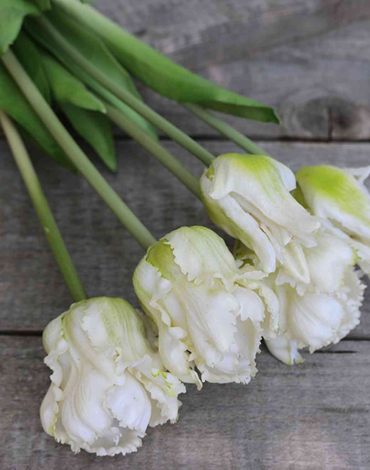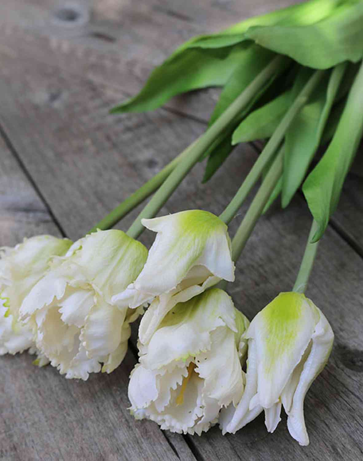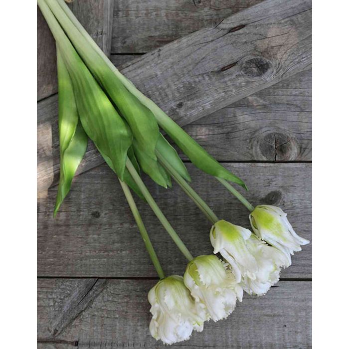 Artificial bouquet of parrot tulips TYRA, white-green, 18"/45cm, Ø8"/20cm