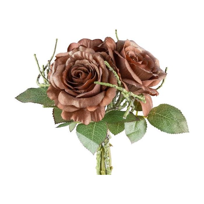 Artificial bouquet of roses JILDA with glitter, dark brown, 12"/30cm
