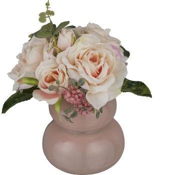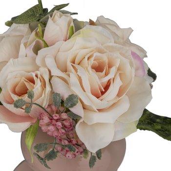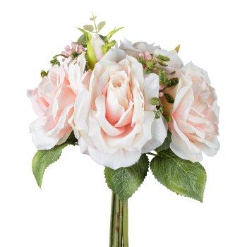 Artificial bouquet of roses NURZO with accessories, pale pink, 12"/30cm