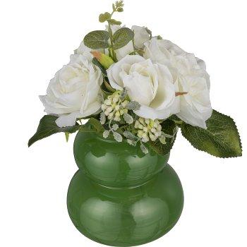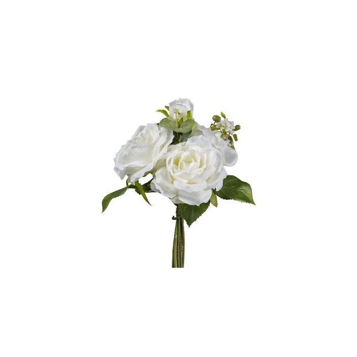 Artificial bouquet of roses NURZO with accessories, white, 12"/30cm