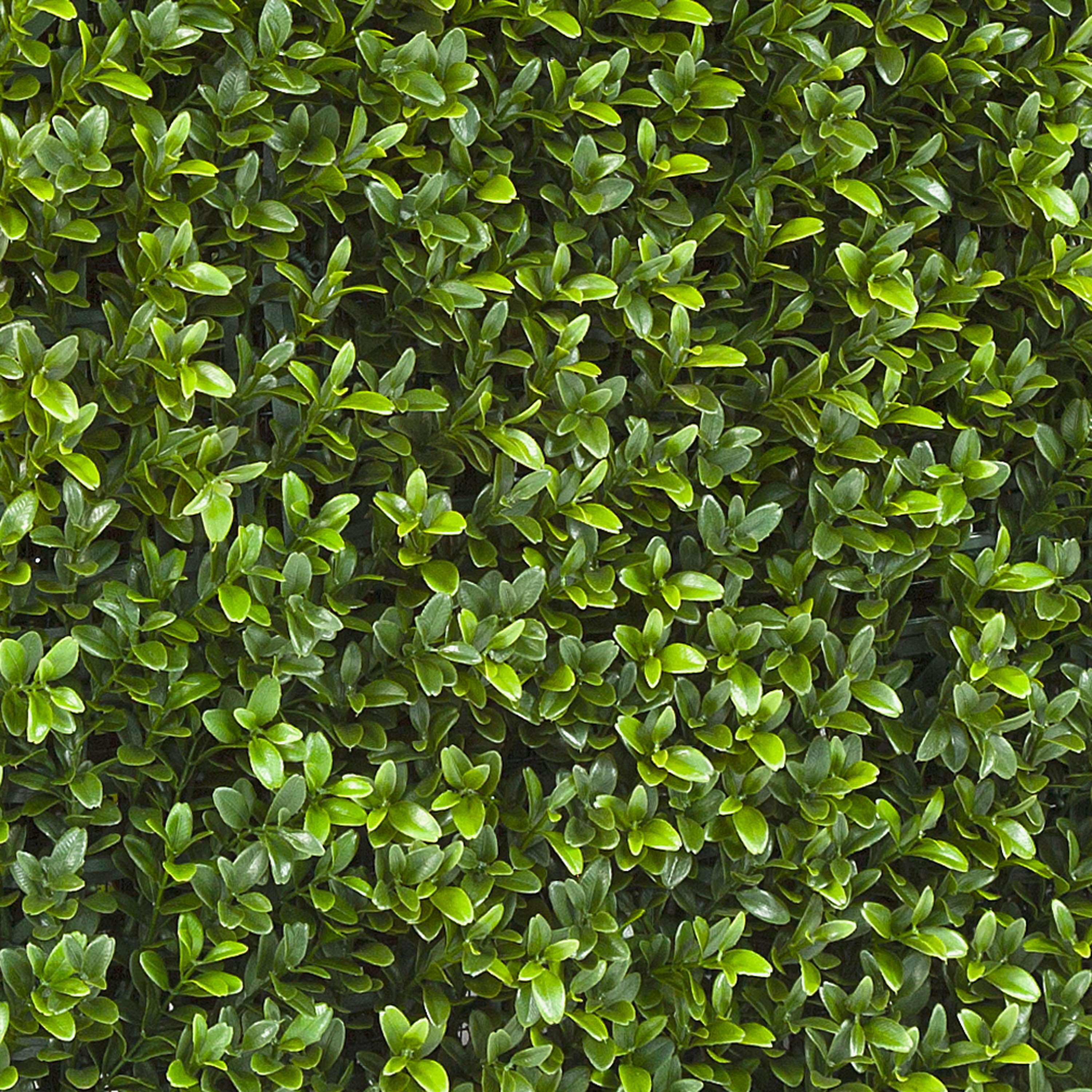 Fake Boxwood hedge TOM with light and dark green leaves in a natural look on a metal frame. The Boxwood hedge is with its width of approx. 4ft/120 cm and a height of approx. 33"/85 cm an ideal privacy screen or room divider.