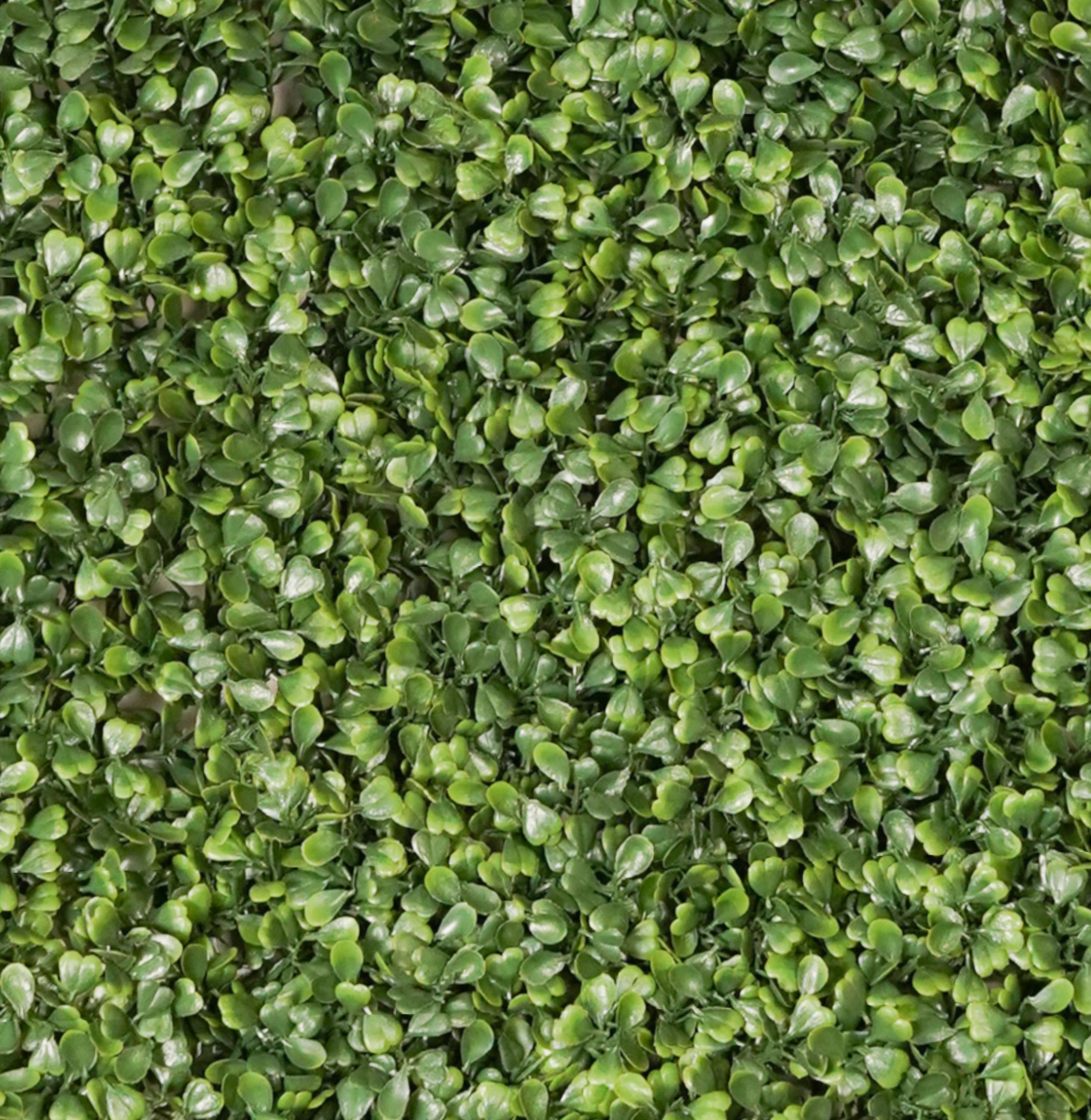 The artificial boxwood carpet HEINZ is dotted with light and dark green leaves in heart shape. The boxwood carpet measures approx. 20" x 20"/50 x 50 cm in size.