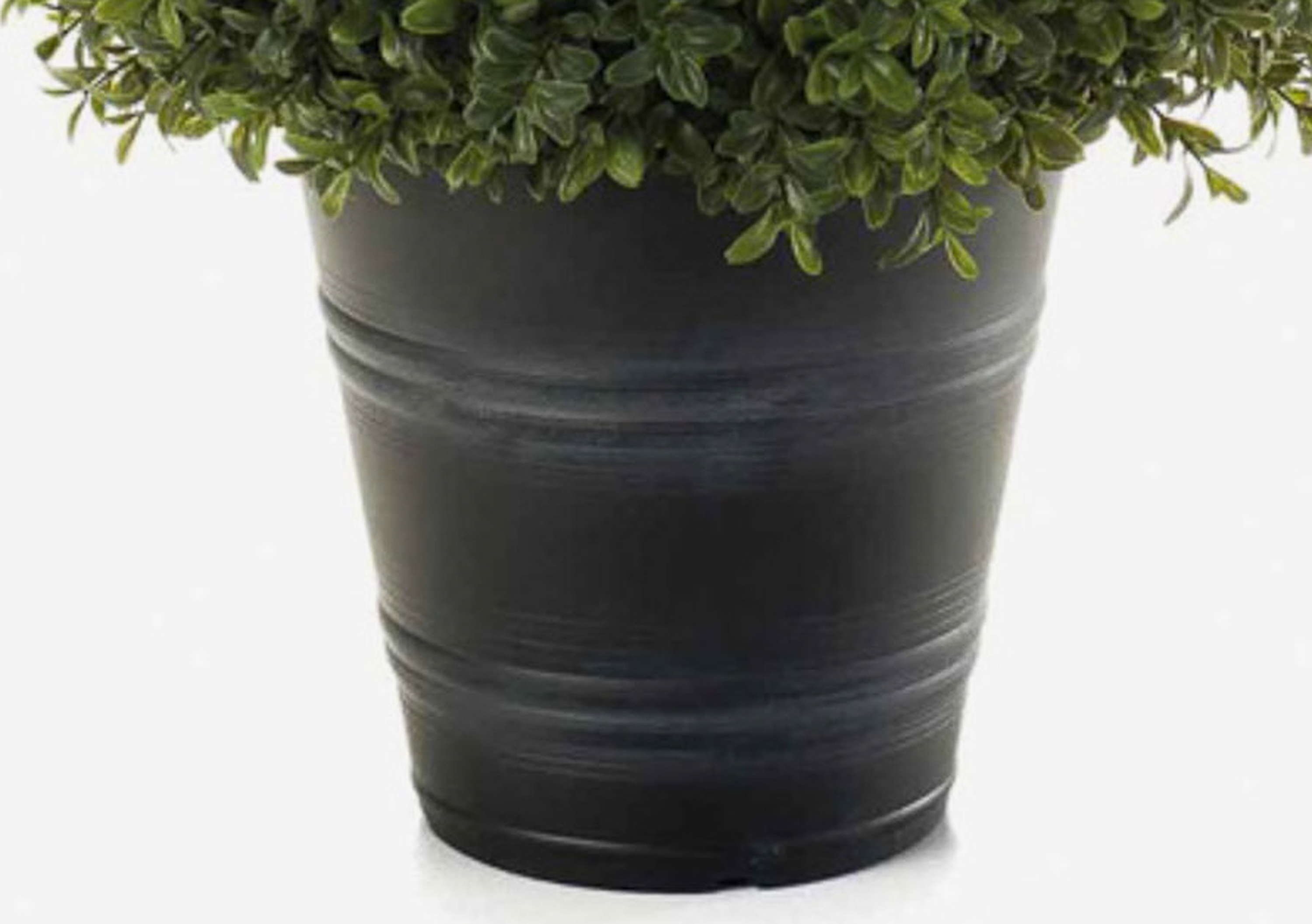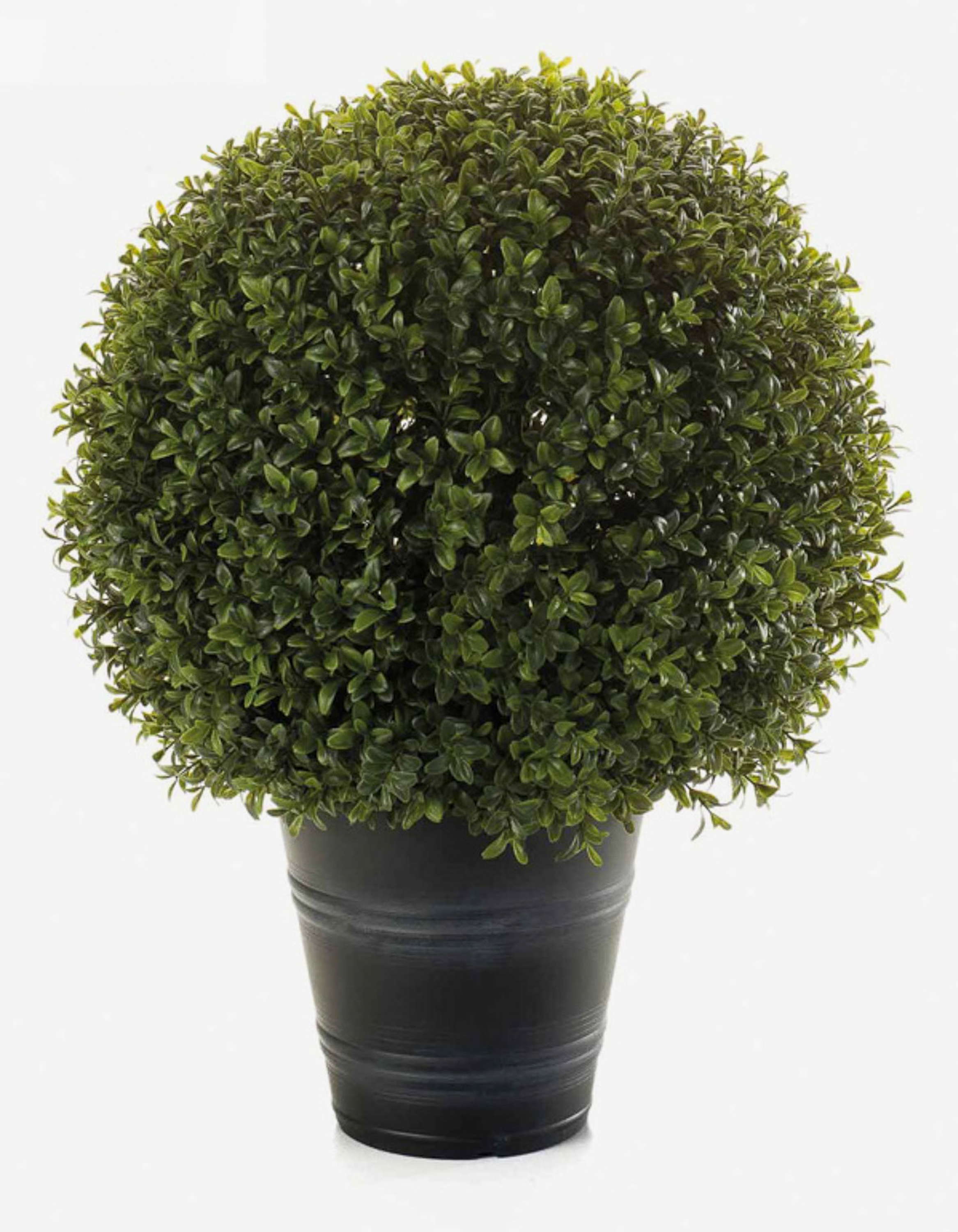 False boxwood ball TOM in a black decorative pot. The artificial boxwood has a height of approx. 53 cm and a total diameter of approx. 40 cm.
