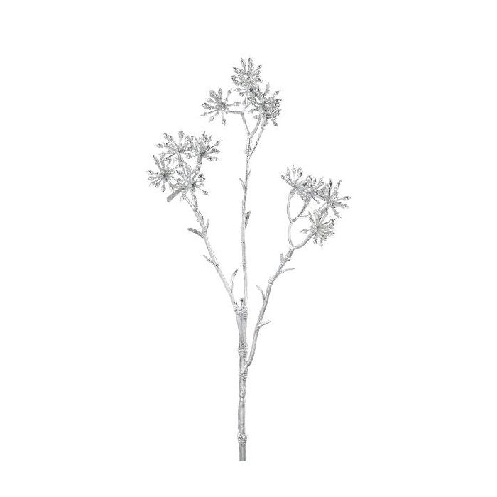 Artificial branch Japanese aralia KLORIM with flowers, silver, 14"/35cm