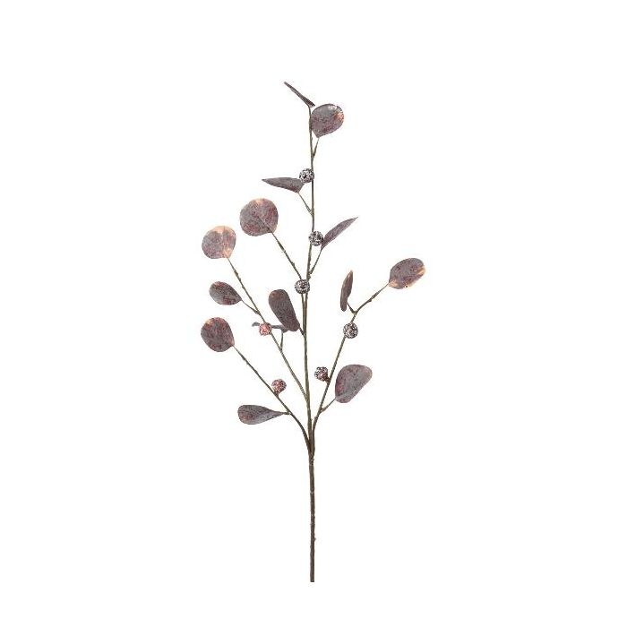 Artificial branch of eucalyptus TRAVON with fruits, aubergine, 30"/75cm