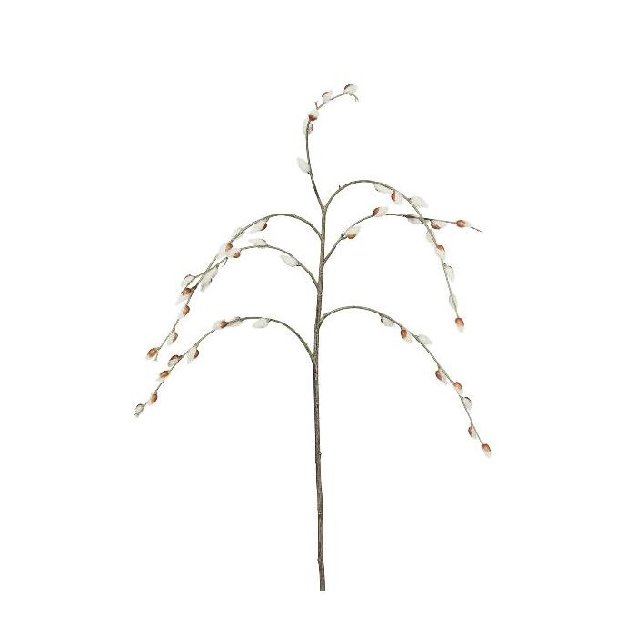 Artificial branch of pussy willow BLONKE with flowers, white-brown, 33"/85cm