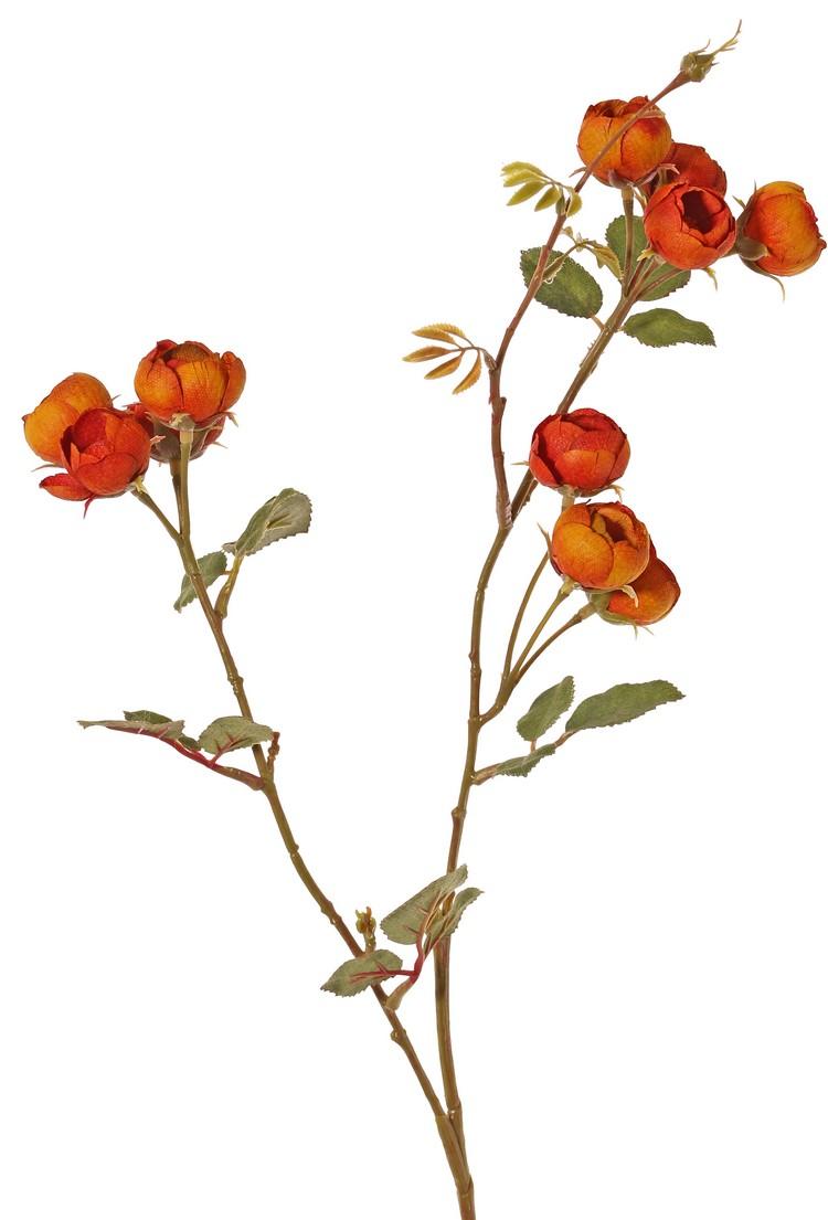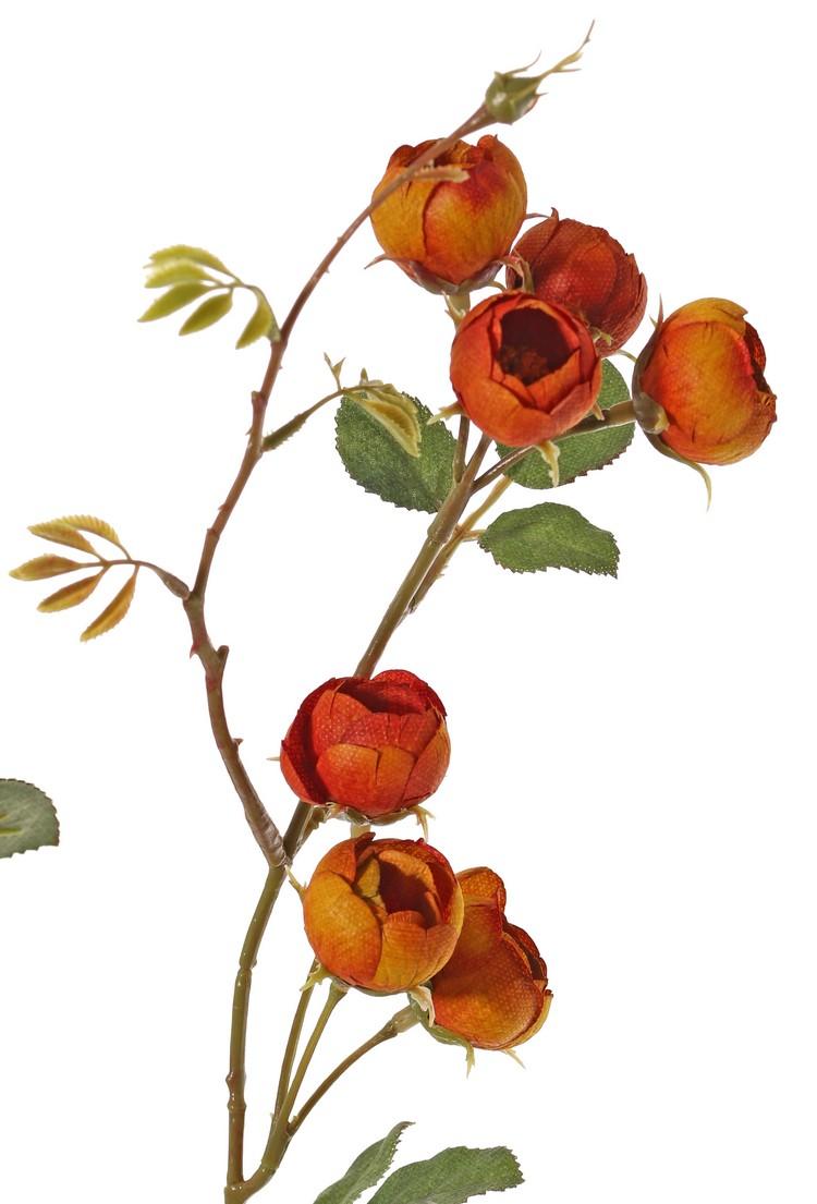 Artificial cabbage rose branch LORRAINE, Eco Collection, orange-yellow, 26"/65cm, Ø1"/2,5cm