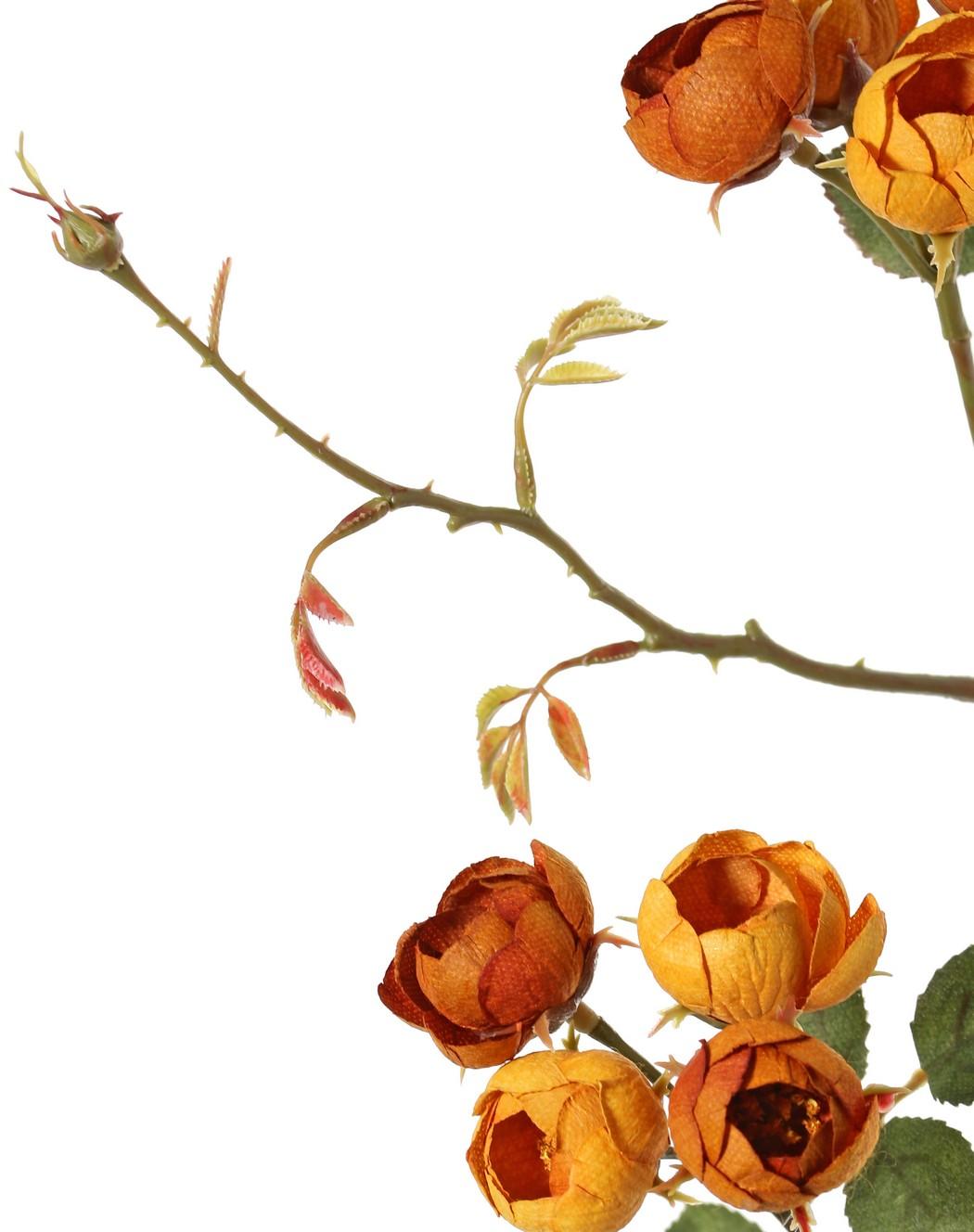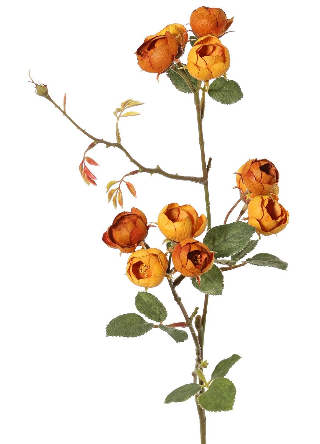Artificial cabbage rose branch LORRAINE, Eco Collection, yellow-orange, 26"/65cm, Ø1"/2,5cm