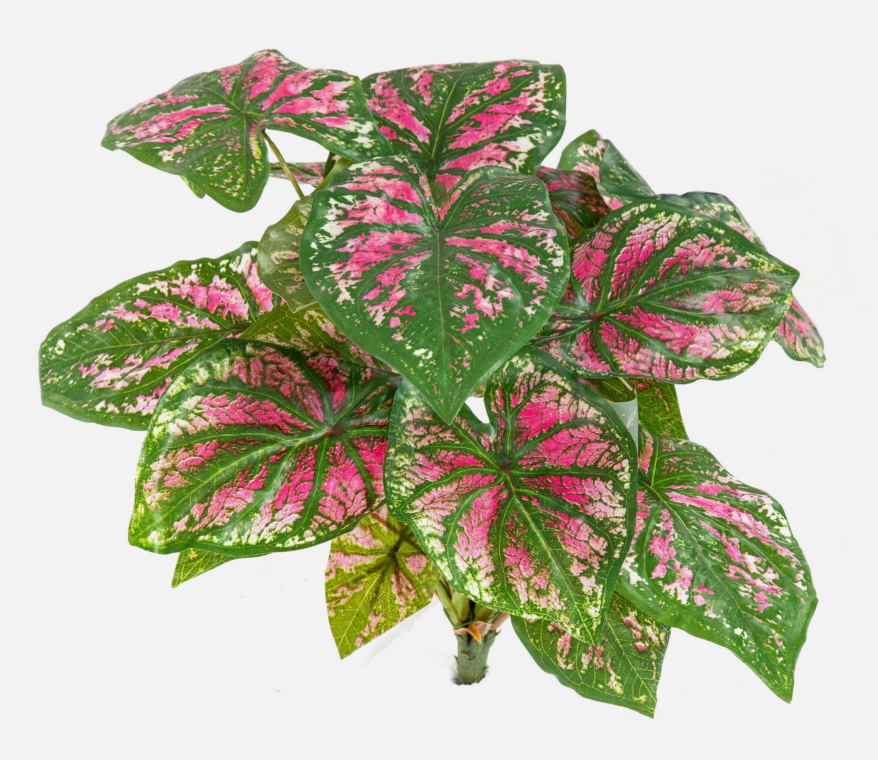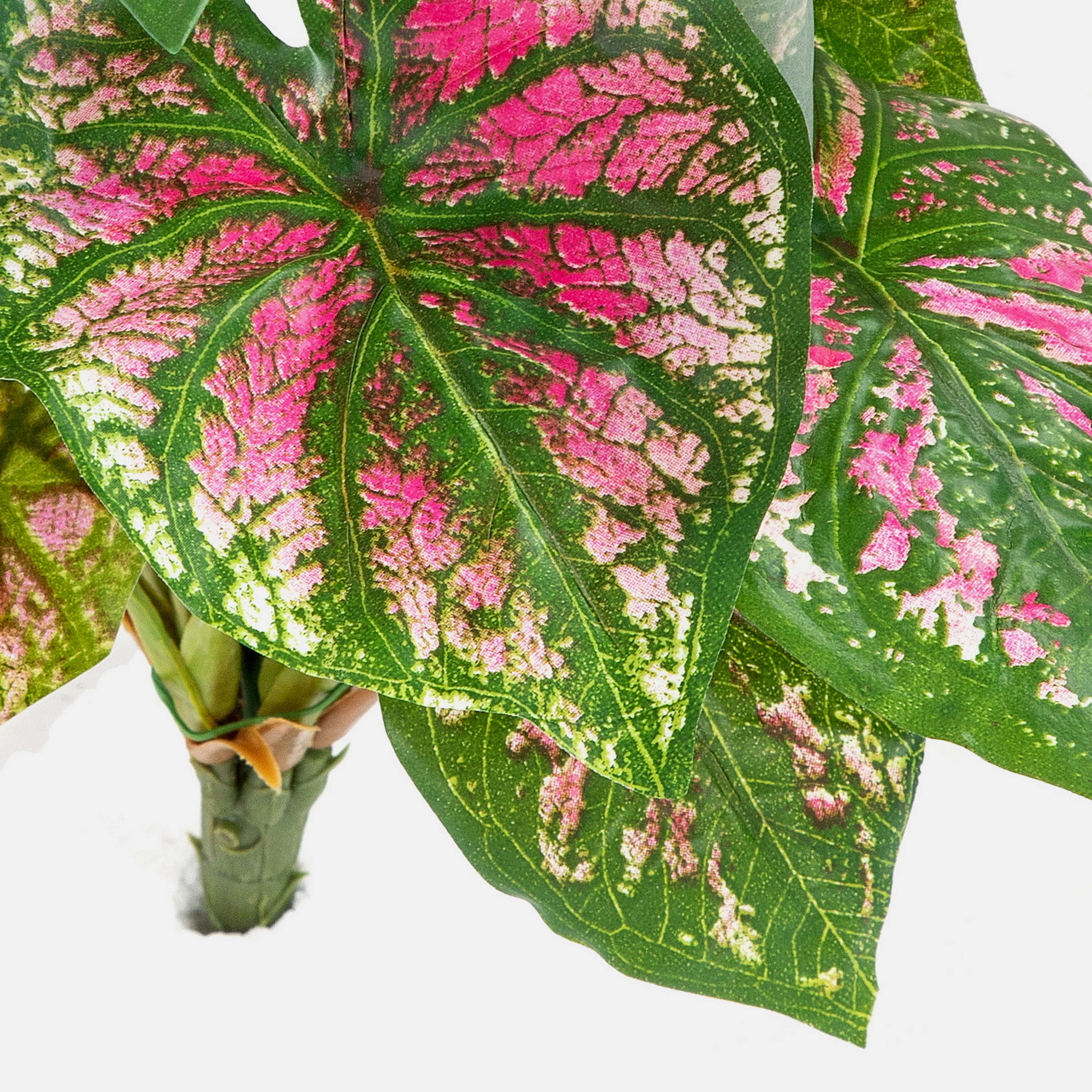 The fake caladium BECRUX in colour green-pink will make a beautiful decoration e.g. in the living room, dining room, etc.