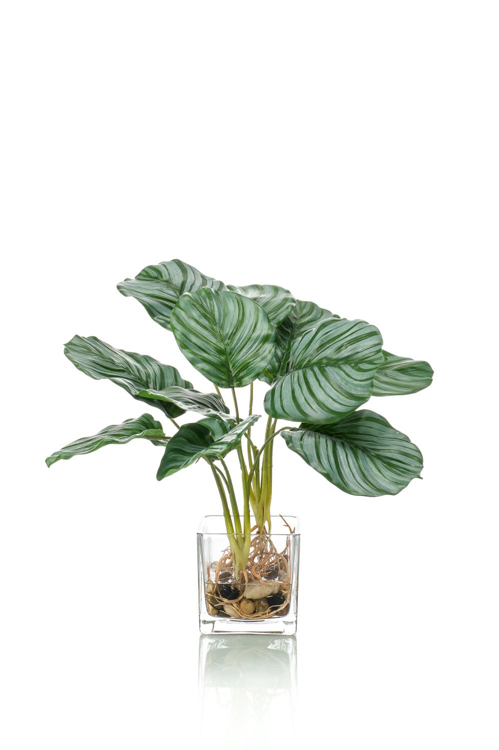 Art peacock plant AGINA in a decorative glass with roots and gravel matches any interior style and immediately catches the eye.