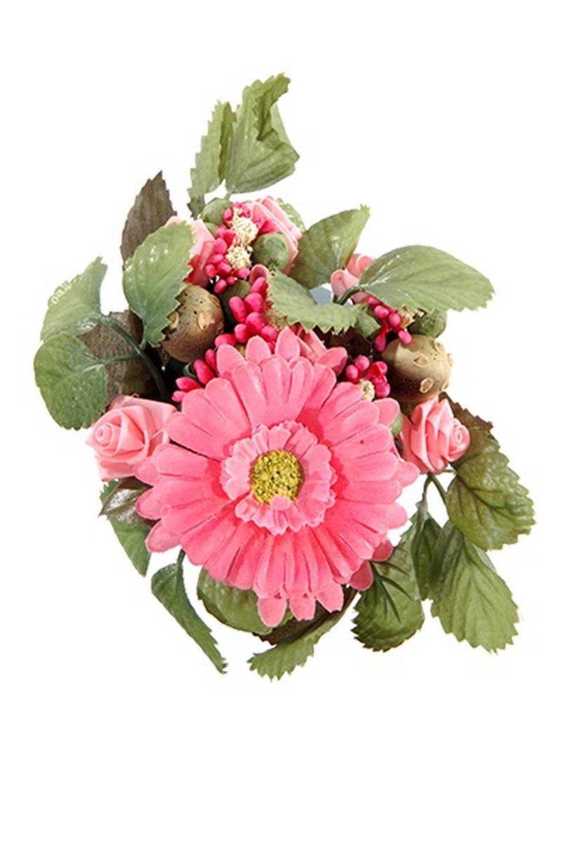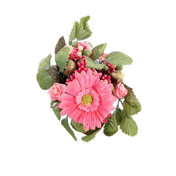 Artificial candle wreath AMARINA with gerbera and rose, fuchsia, Ø 3.9"/10cm