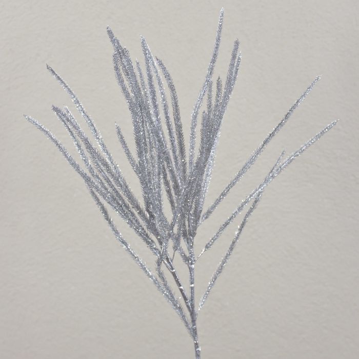 Artificial cedar branch THEOBALD, glitter, silver, 24"/60cm