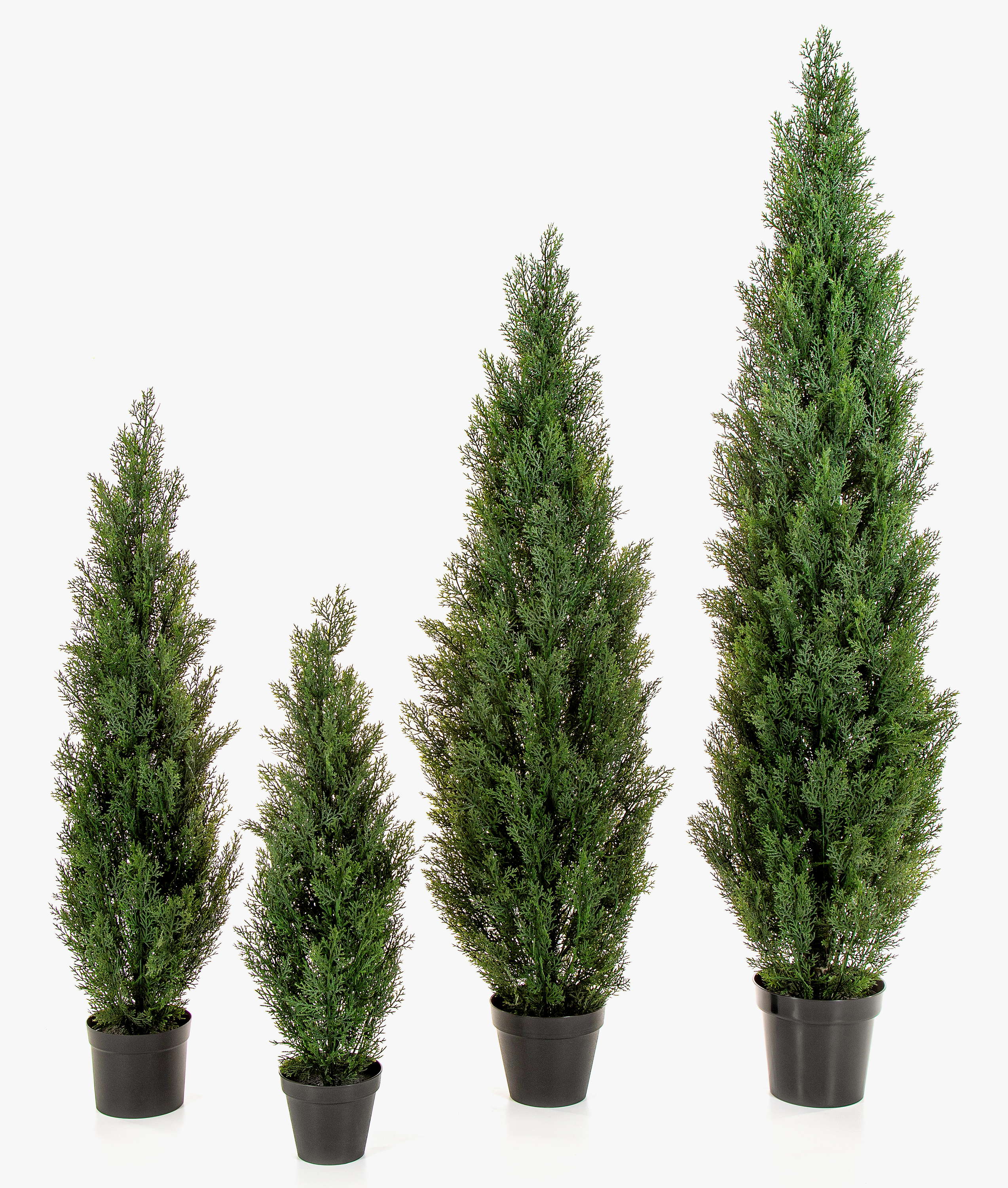 Fake cedar REVATI in colour green. This tree, which is often used as a hedge plant, will look particularly good indoors as a privacy screen.