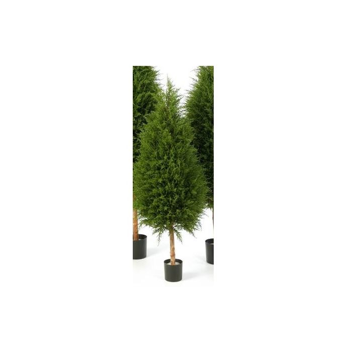 Fake cedar pine cypress YVONNE in a pot which is weighted with cement. The cedar has a total height of approx. 5ft/150 cm.