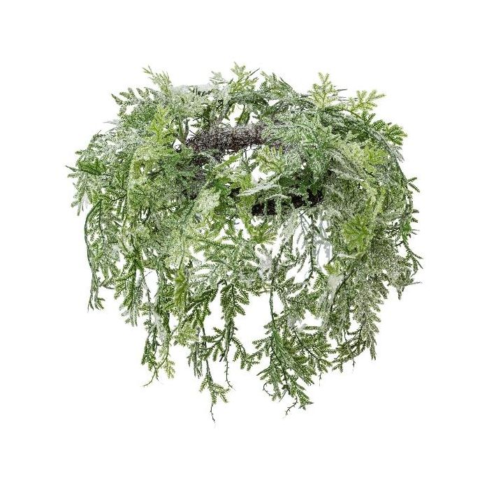 Artificial ceiling wreath Cypress SOVLI, frosted, white-green, Ø22"/55cm