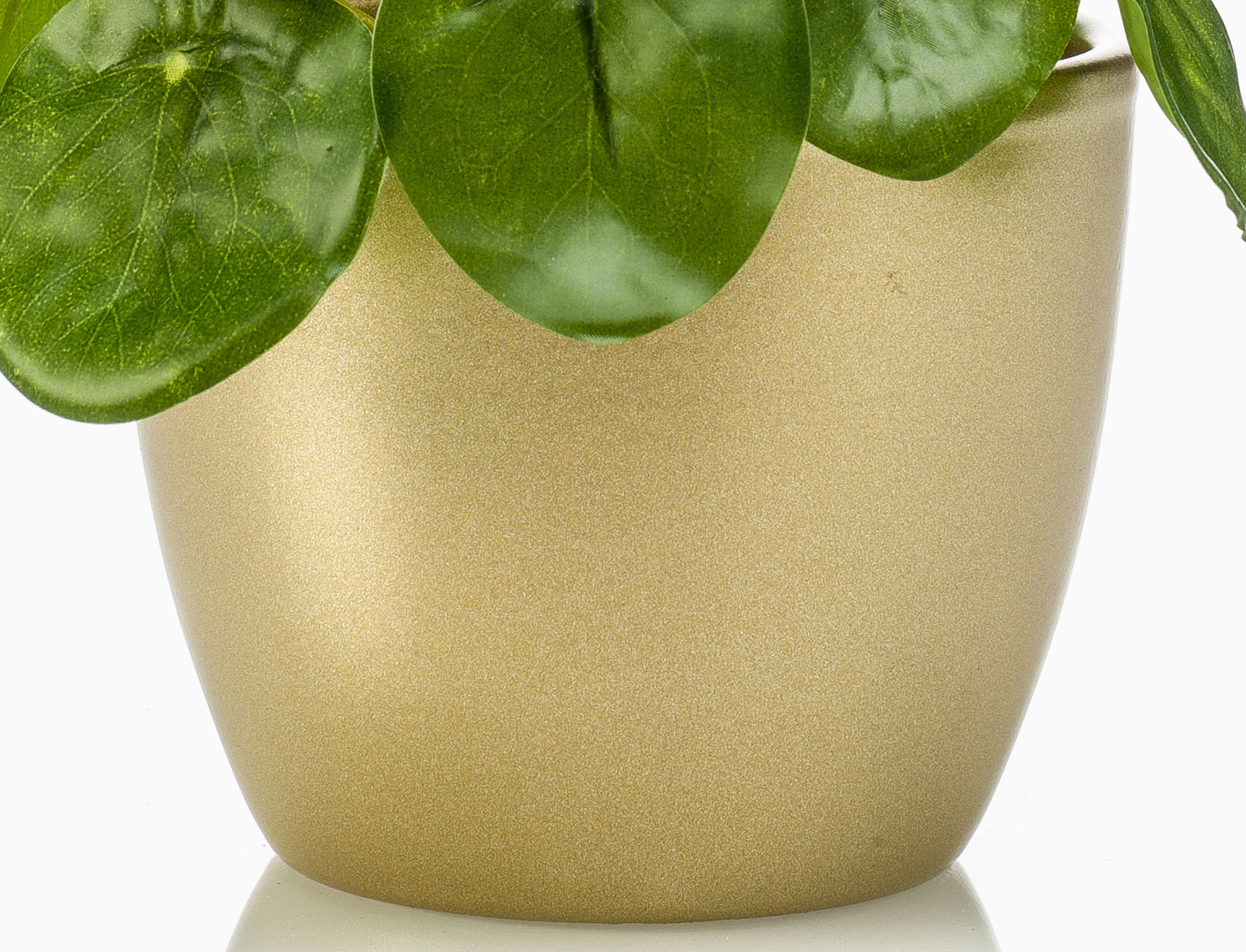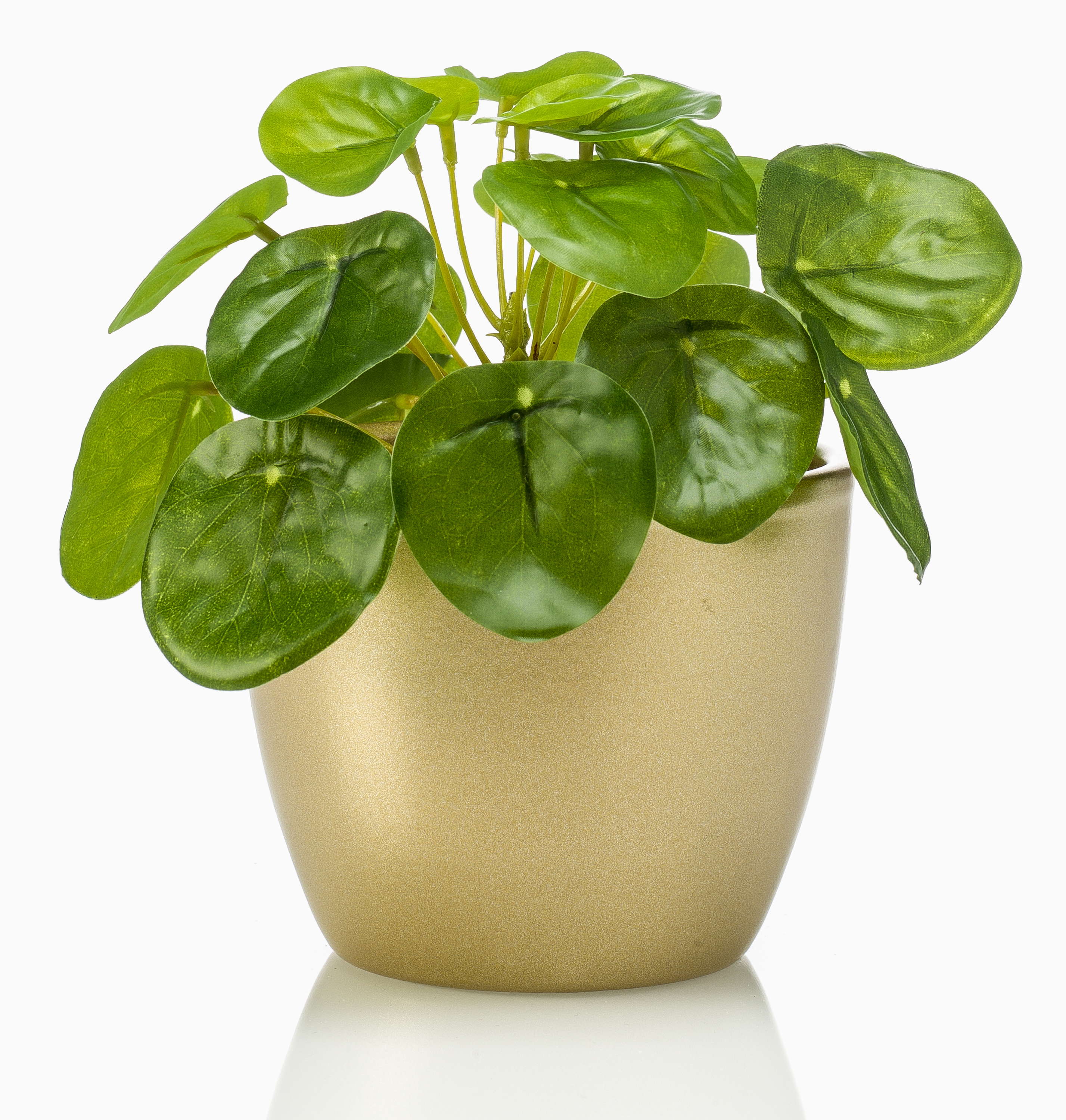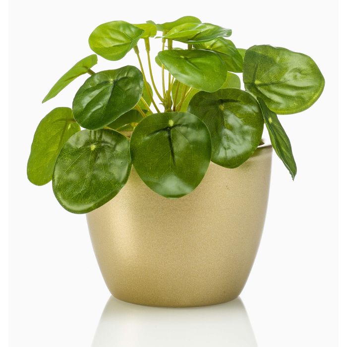 Artificial chinese money plant SYBIL in ceramic pot gold, green, 5"/13cm