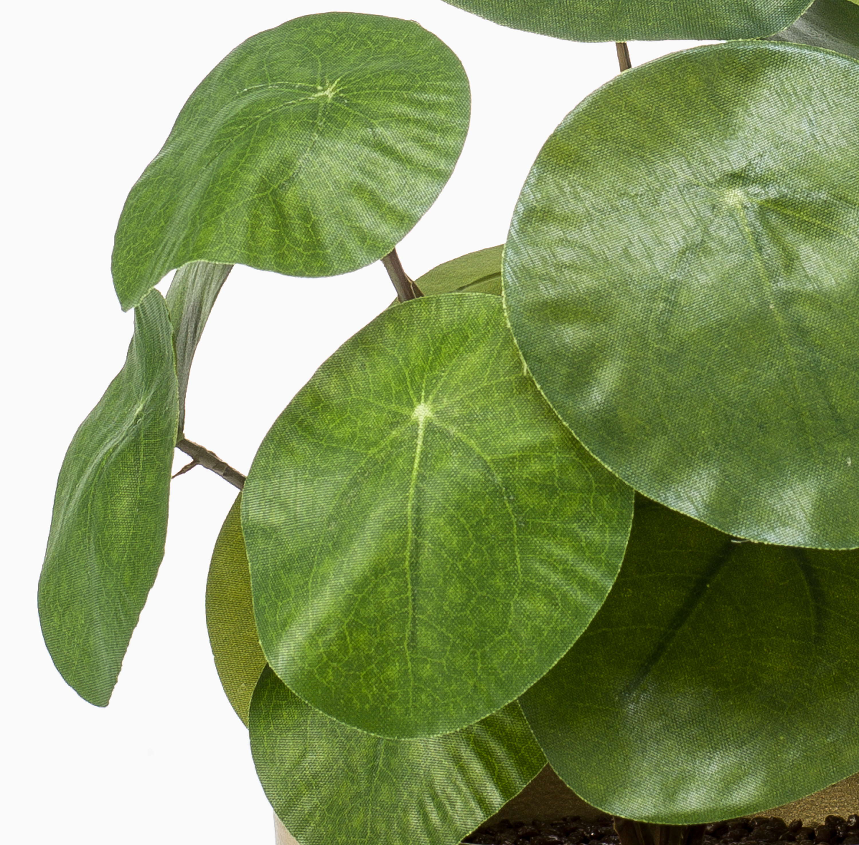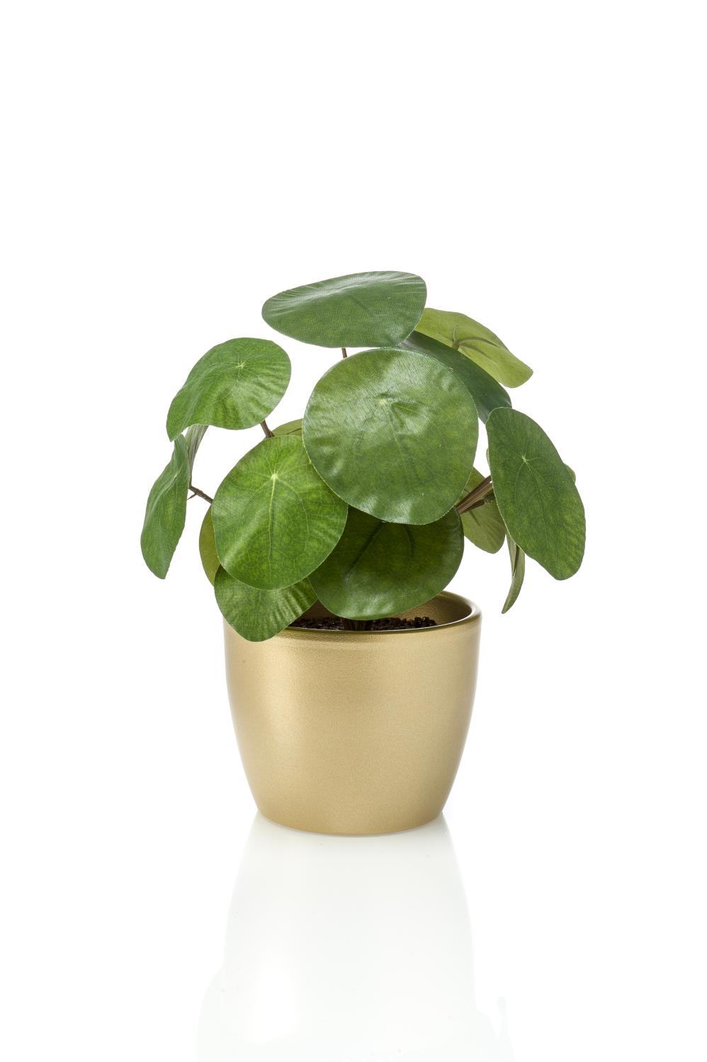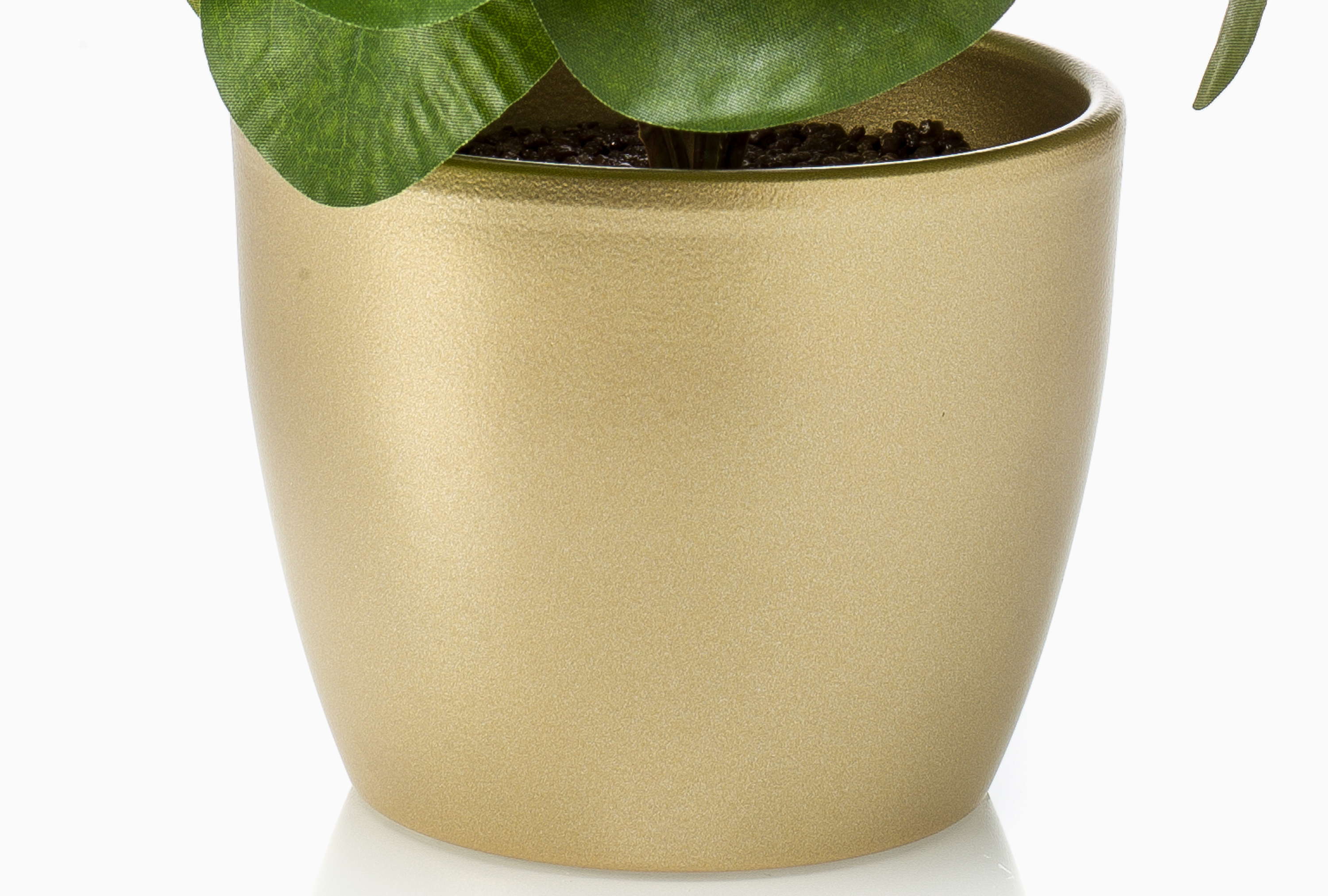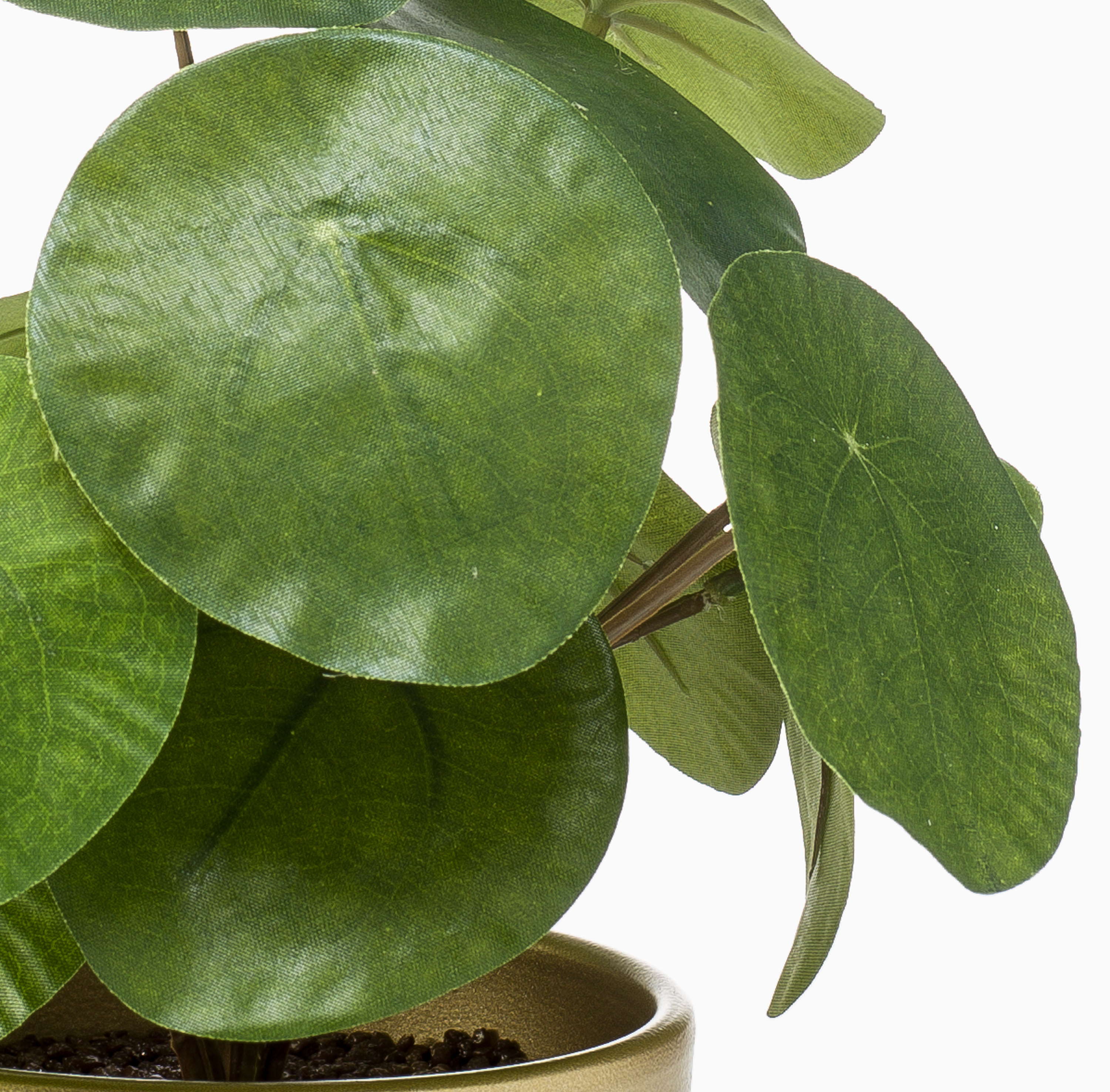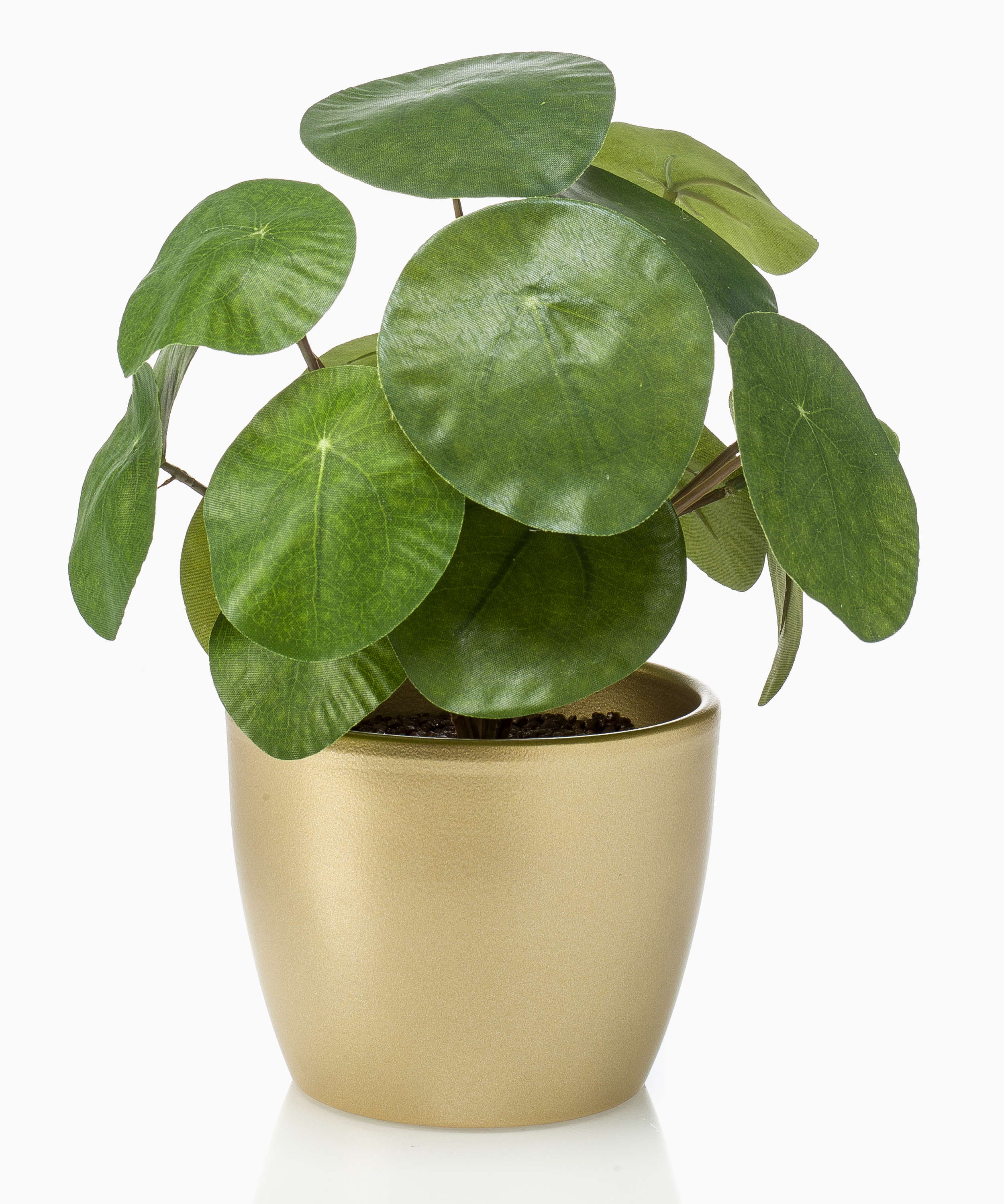 Artificial chinese money plant SYBIL in ceramic pot gold, green, 8"/20cm