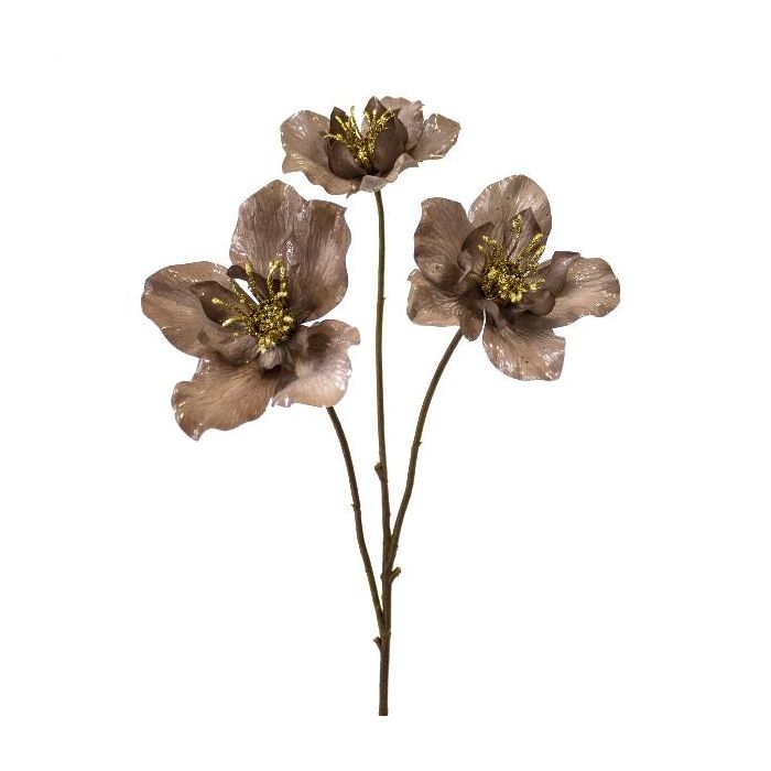 Artificial Christmas rose branch FLOMKE, metallic brown, 22"/55cm
