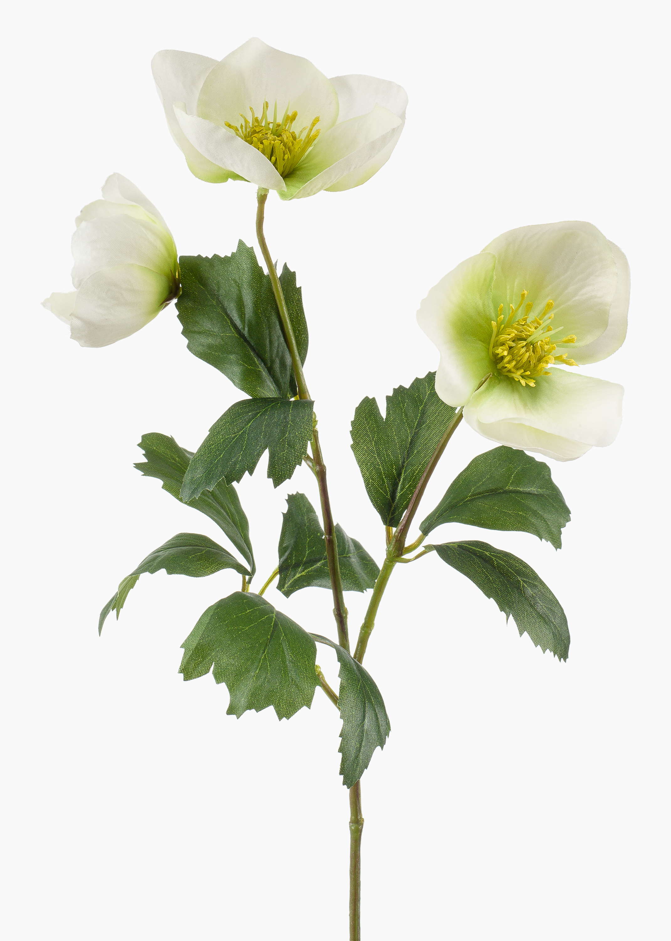 Artificial Christmas rose MERUEL, white-green, 18"/45cm