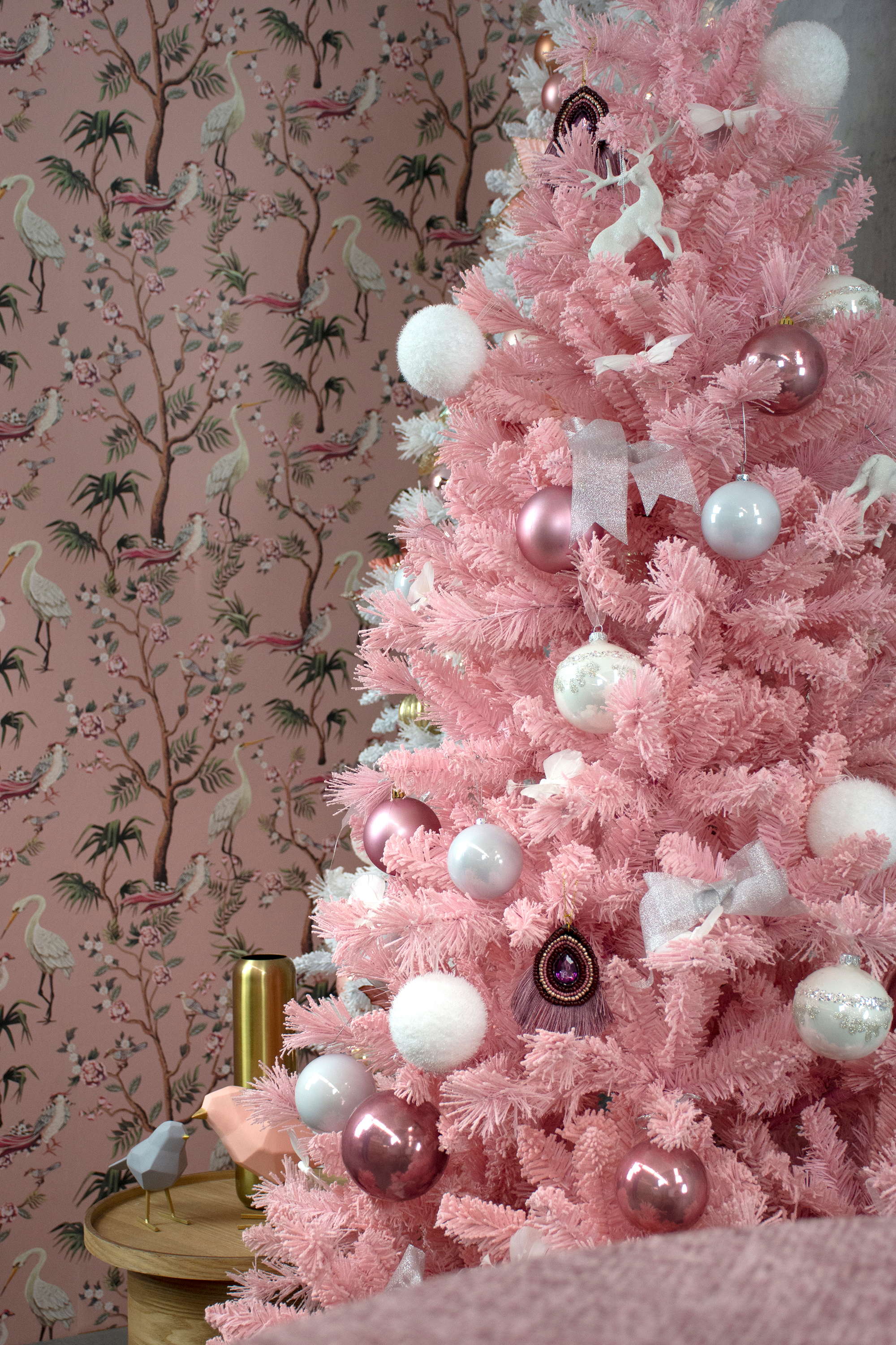 Fake fir tree/Christmas tree GOTHENBURG SPEED in colour pink with metal stand consisting of PVC needles. The approx. 210 cm high Christmas tree has a diameter of approx. 105 cm and will be suitable as decoration for the living room at home or for restaurants, shop windows, trade fair stands, etc.