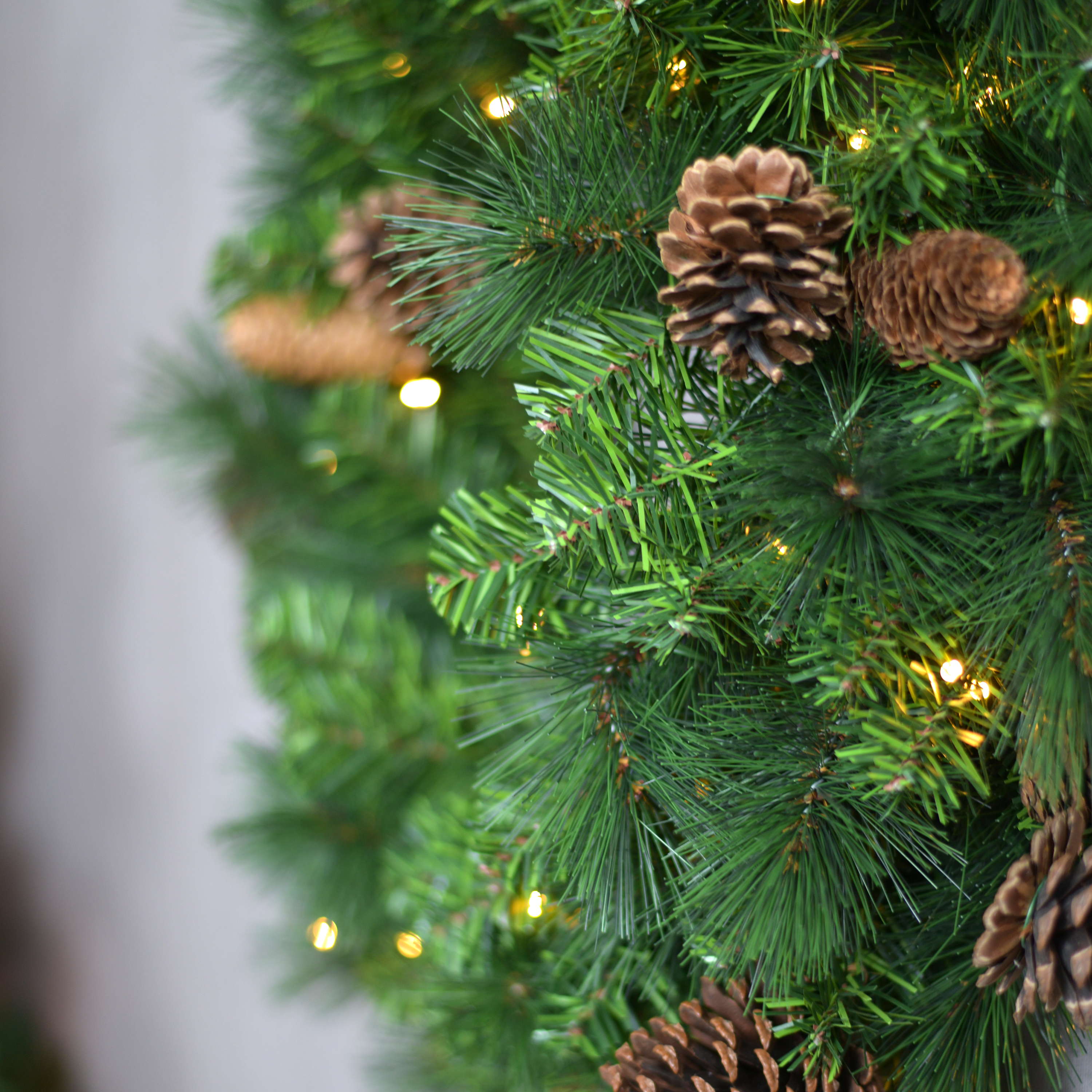 - With fir cones, fairy lights (50 LEDs) and 140 needle branches made of high quality PVC material