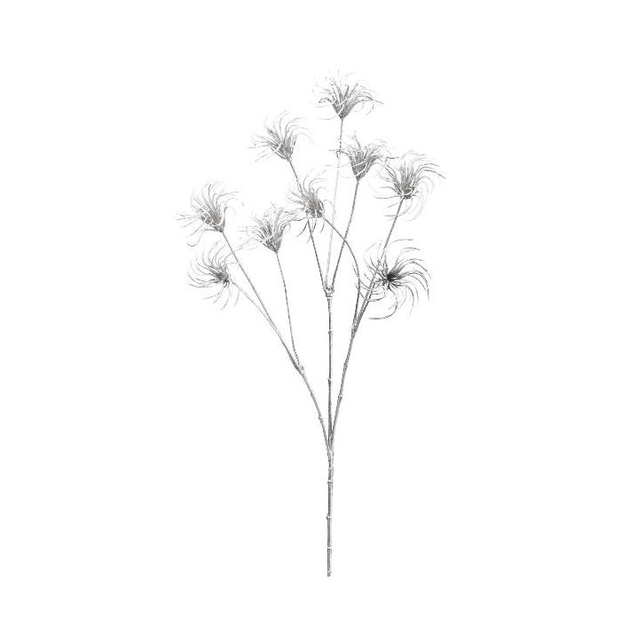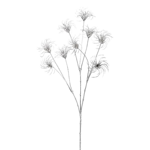 Artificial clematis seed head HARWAY, metallic silver, 28"/70cm, Ø2.8"/7cm