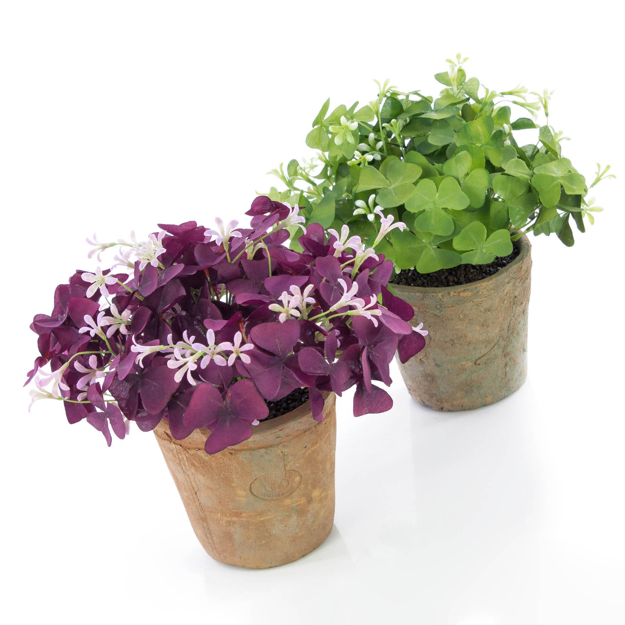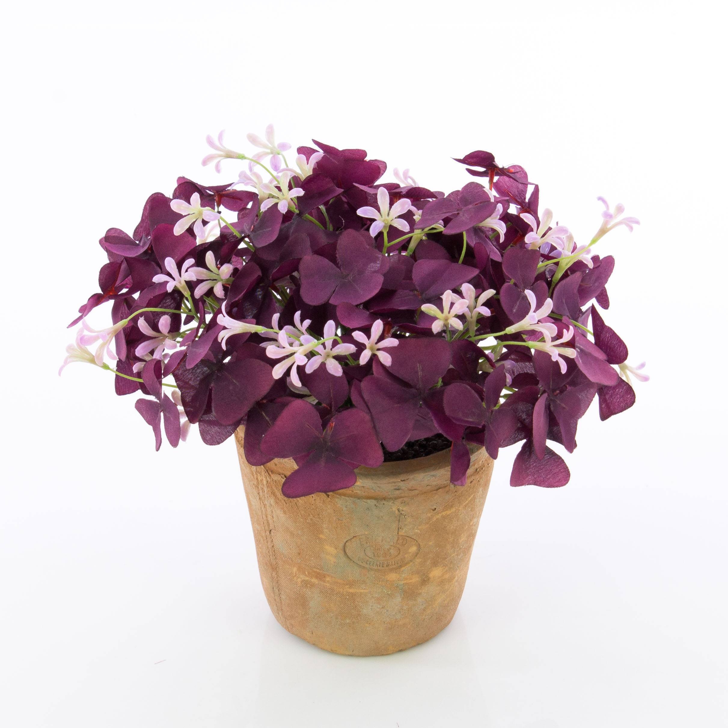 Artificial Clover ALOIS, flowers, terracotta pot, purple, 10"/25cm