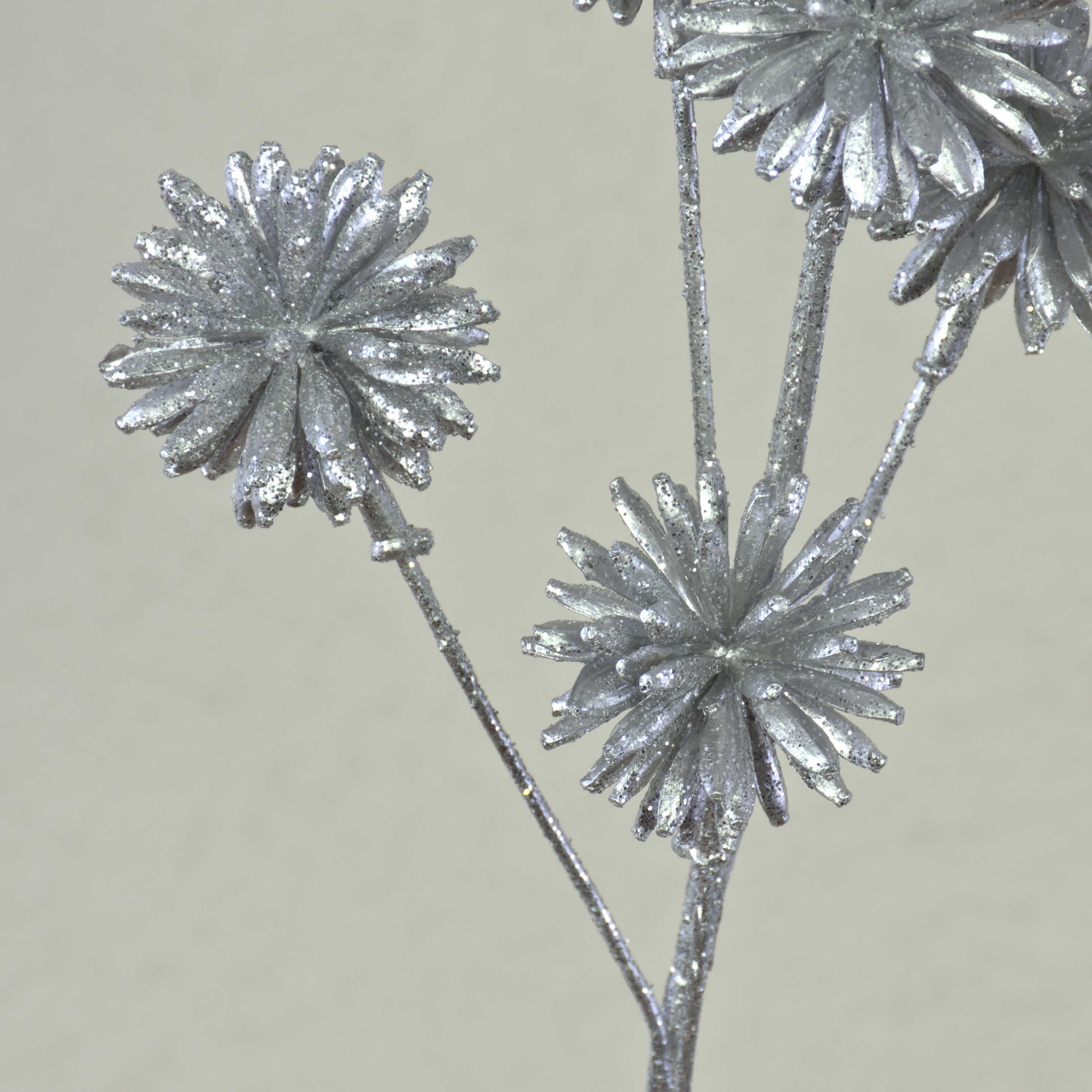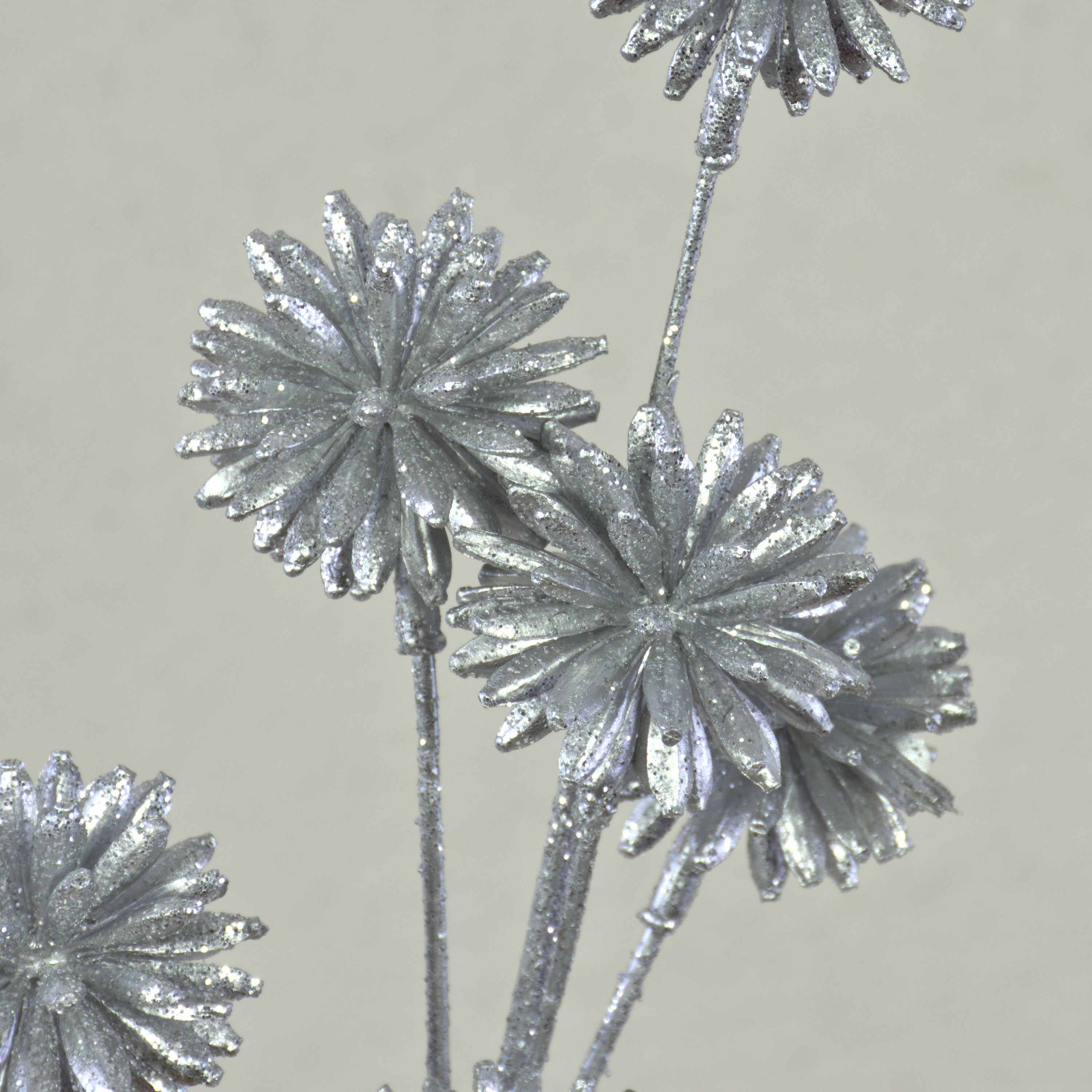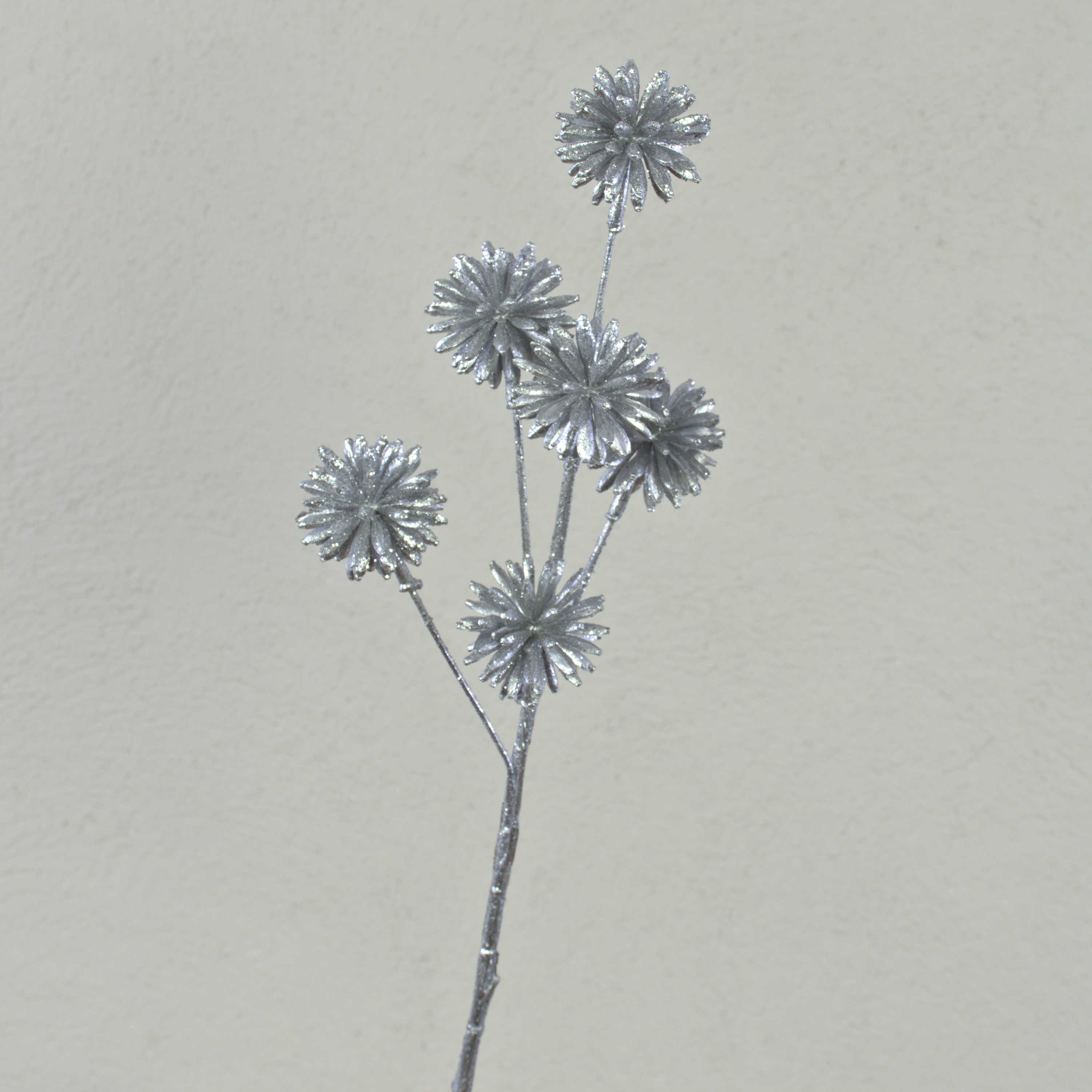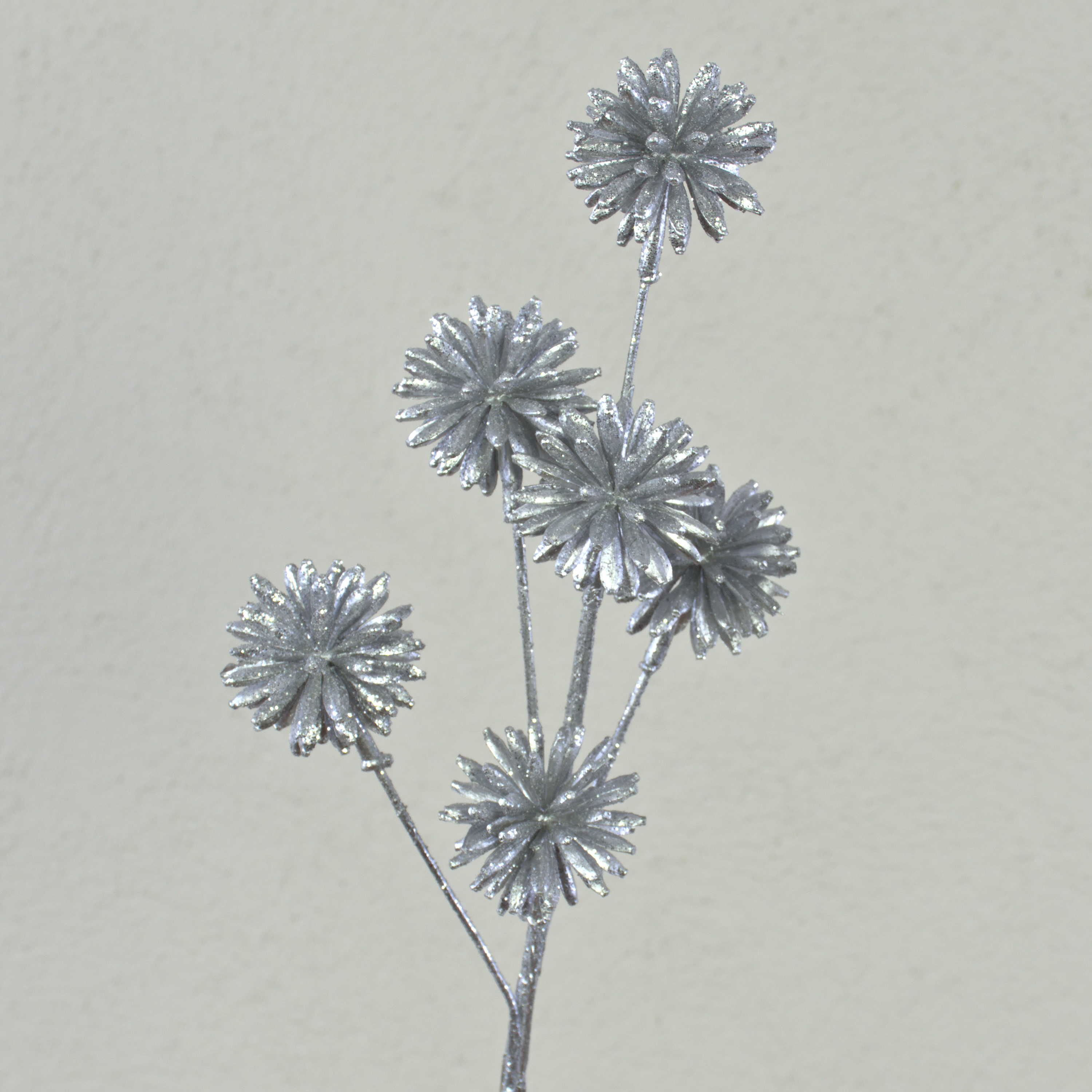Artificial cornflower BIRNA, glitter, silver, 22"/55cm, Ø2"/5cm