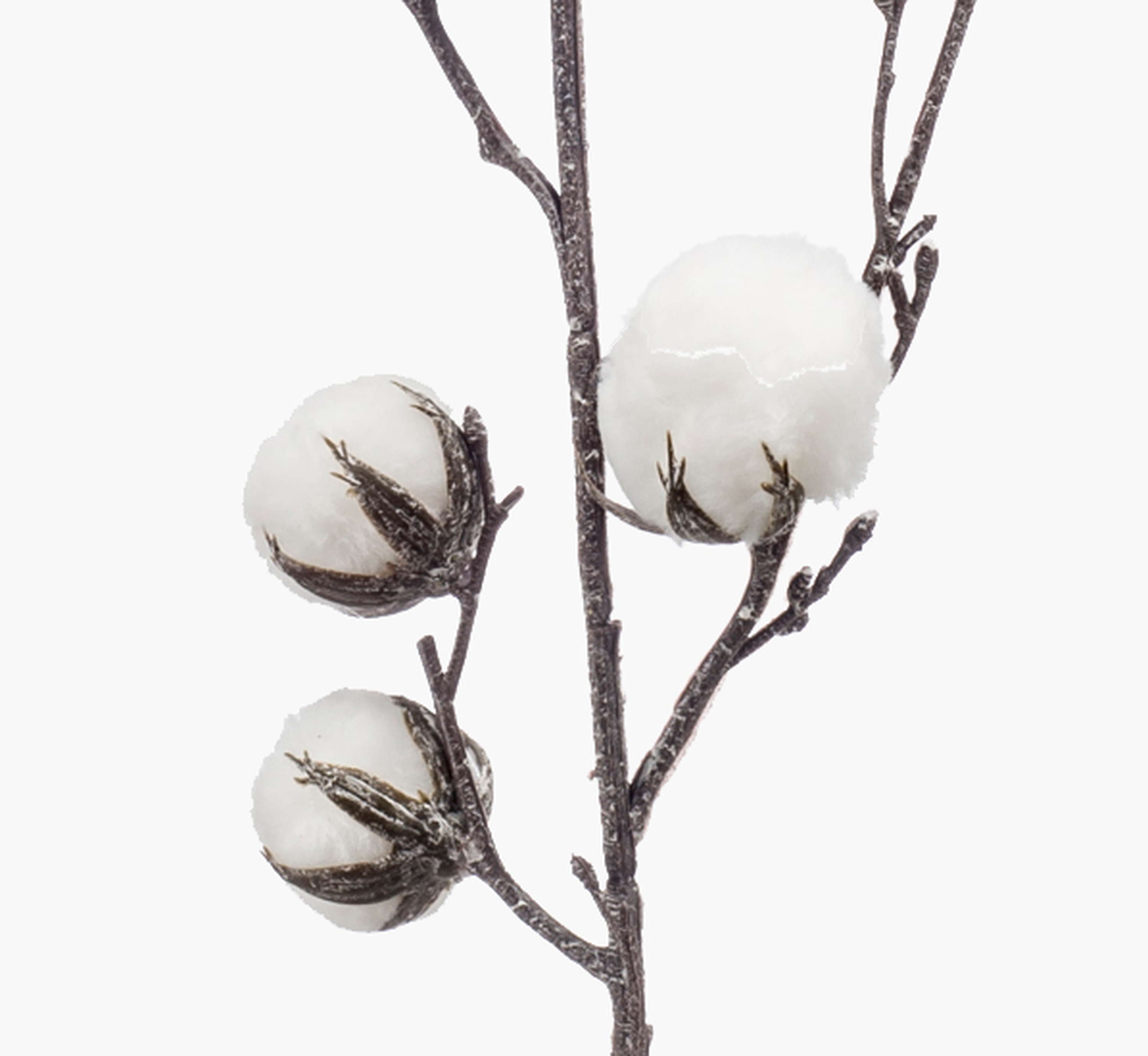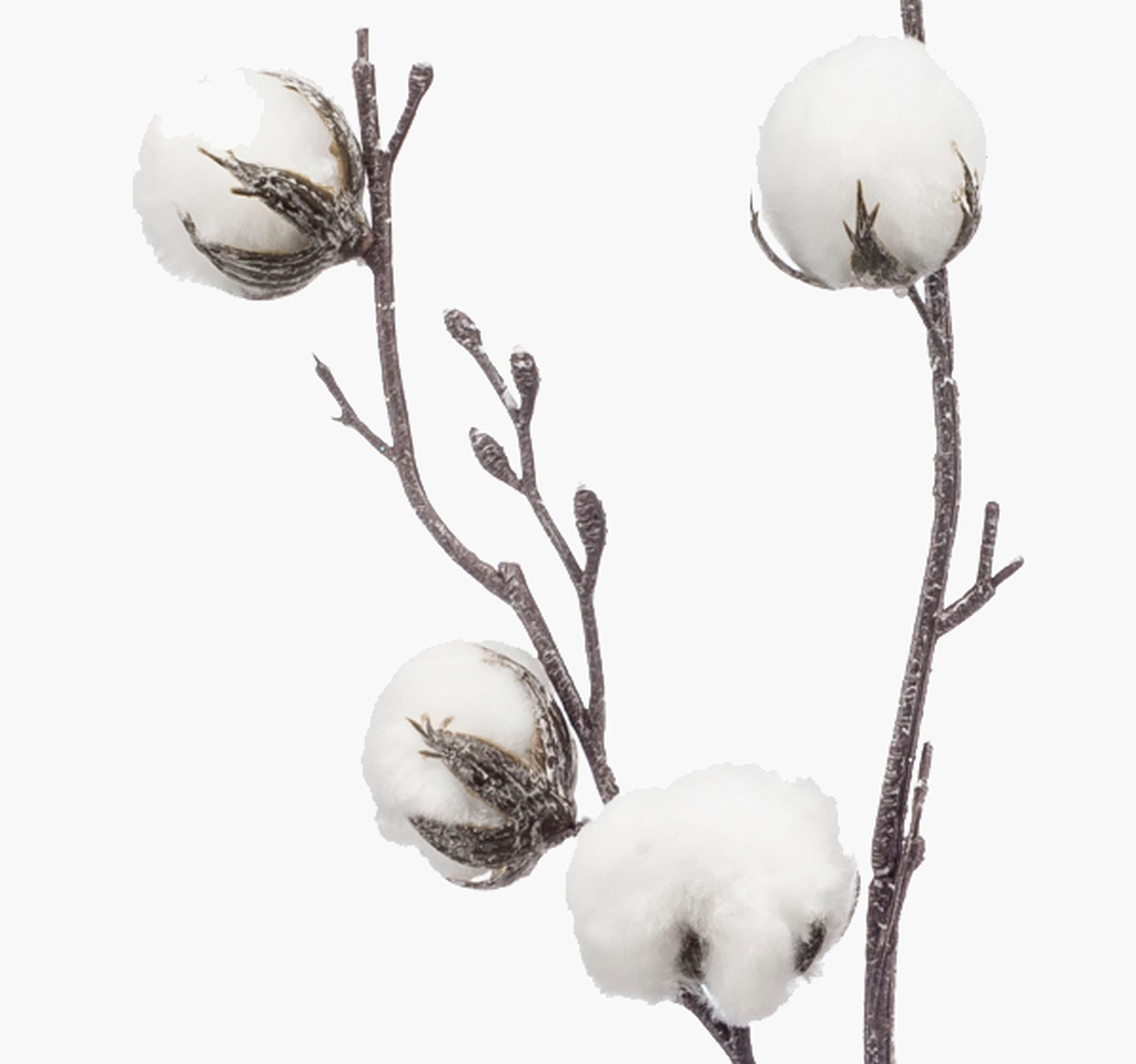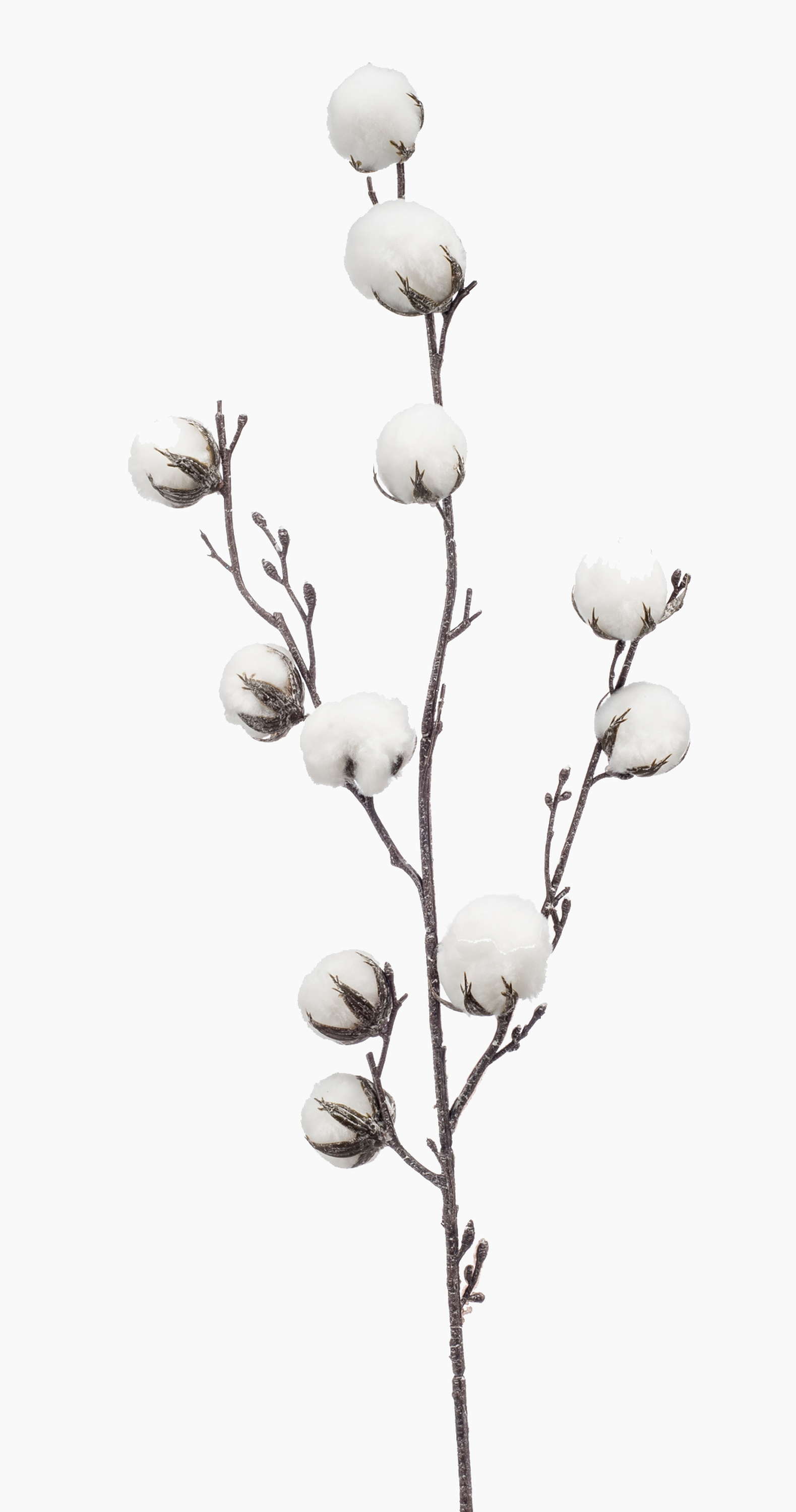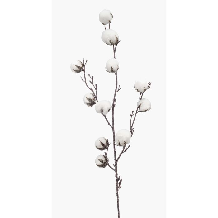 Artificial cotton branch CASAS with flowers, green, 33"/85cm