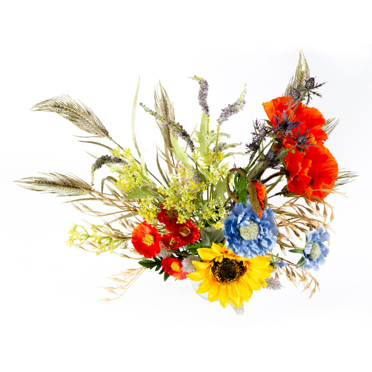 Artificial countryside bouquet PALILA, red-blue-yellow, 80cm, Ø40cm