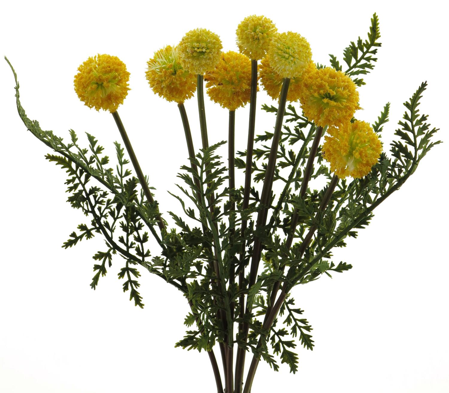 Artificial Craspedia arrangement MANXIA with fern, spike, yellow, 16"/40cm