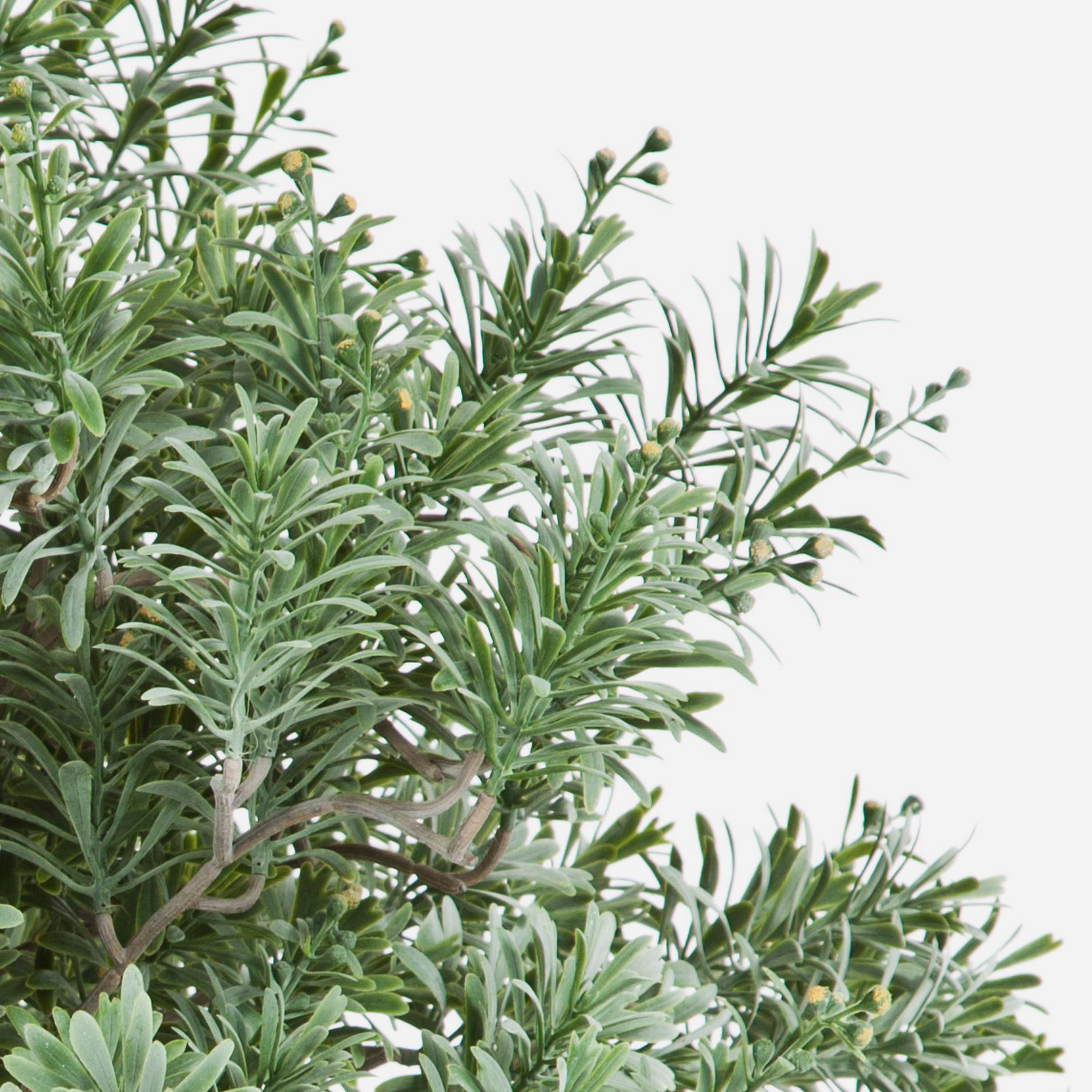 Fake Crossostephium ball KATANA on a natural stem. The plant stands approx. 28"/70 cm high and has 500 leaves for a full appearance.