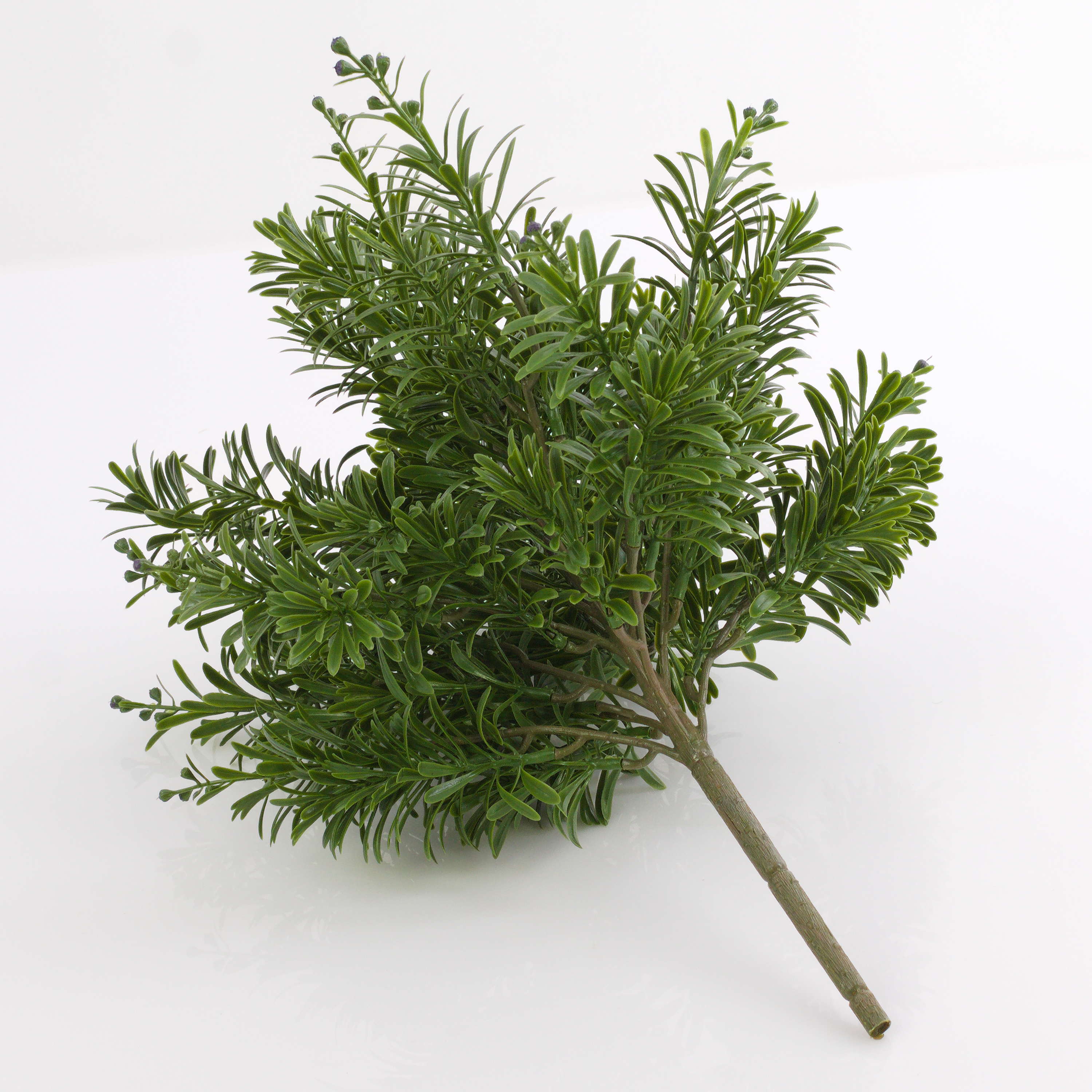 The decorative bush SAKIKO is attached to a spike and is characterised by thick light green leaves and small berries. Placed into a vase, the approx. 15"/38 cm high artificial bush will adorn each dining table.