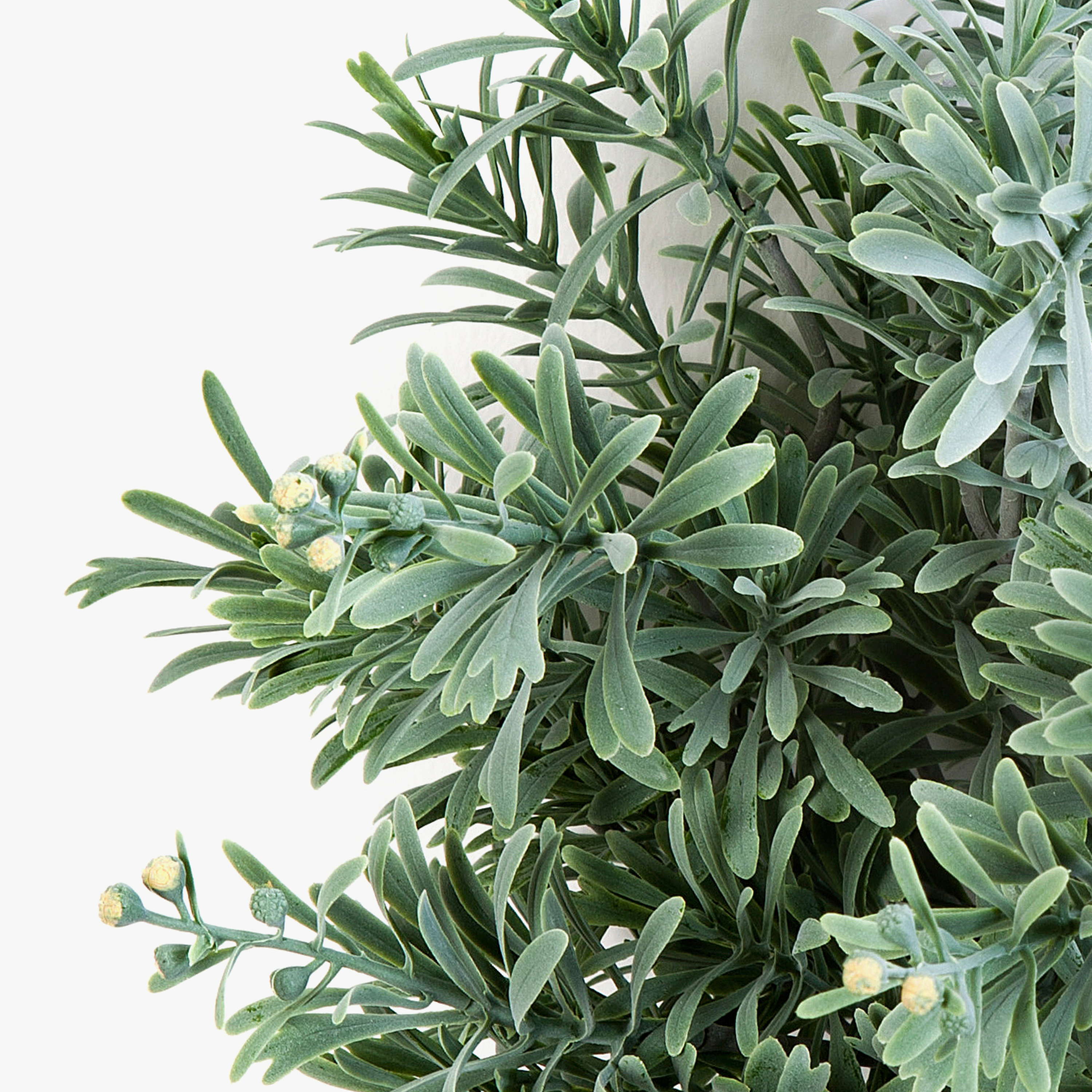 The artificial bush SAKIKO is attached to a spike and is characterised by thick green-silver leaves. Placed into a vase, the approx. 15"/38 cm large artificial bush will be a beautiful decoration for your desk.
