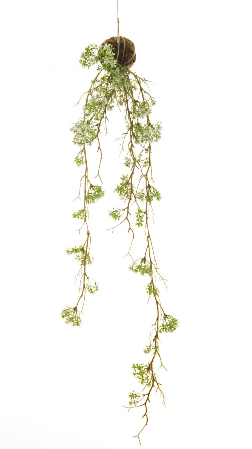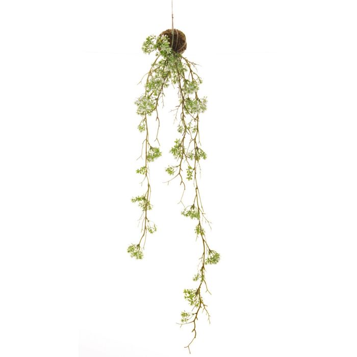 The artificial tendril SIRIA in colour white has a total dimension of approx. 3ft/90 cm and is attached to a moss ball.