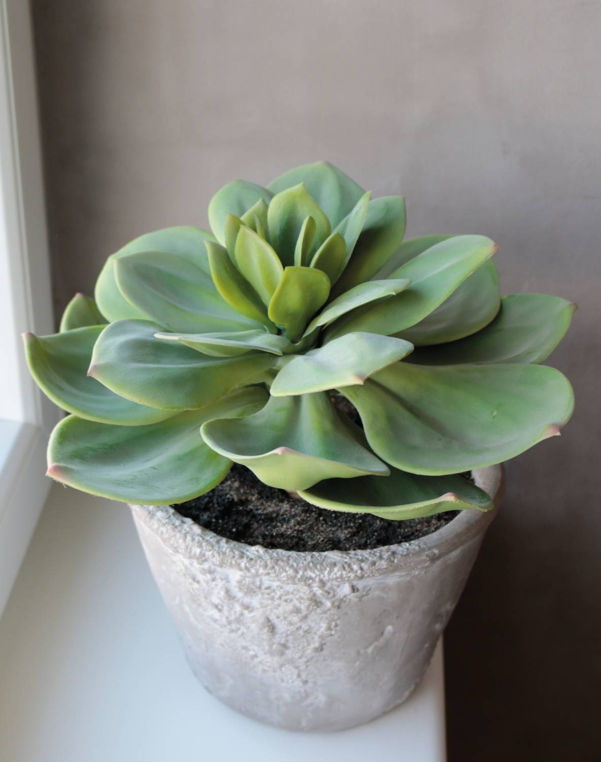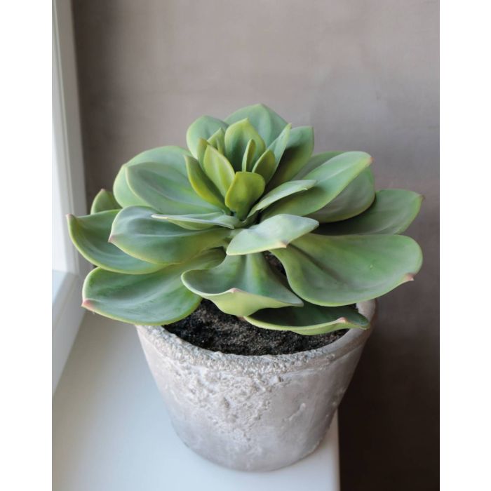 Artificial Echeveria BLAKKUR in concrete pot, green, 14"/35cm
