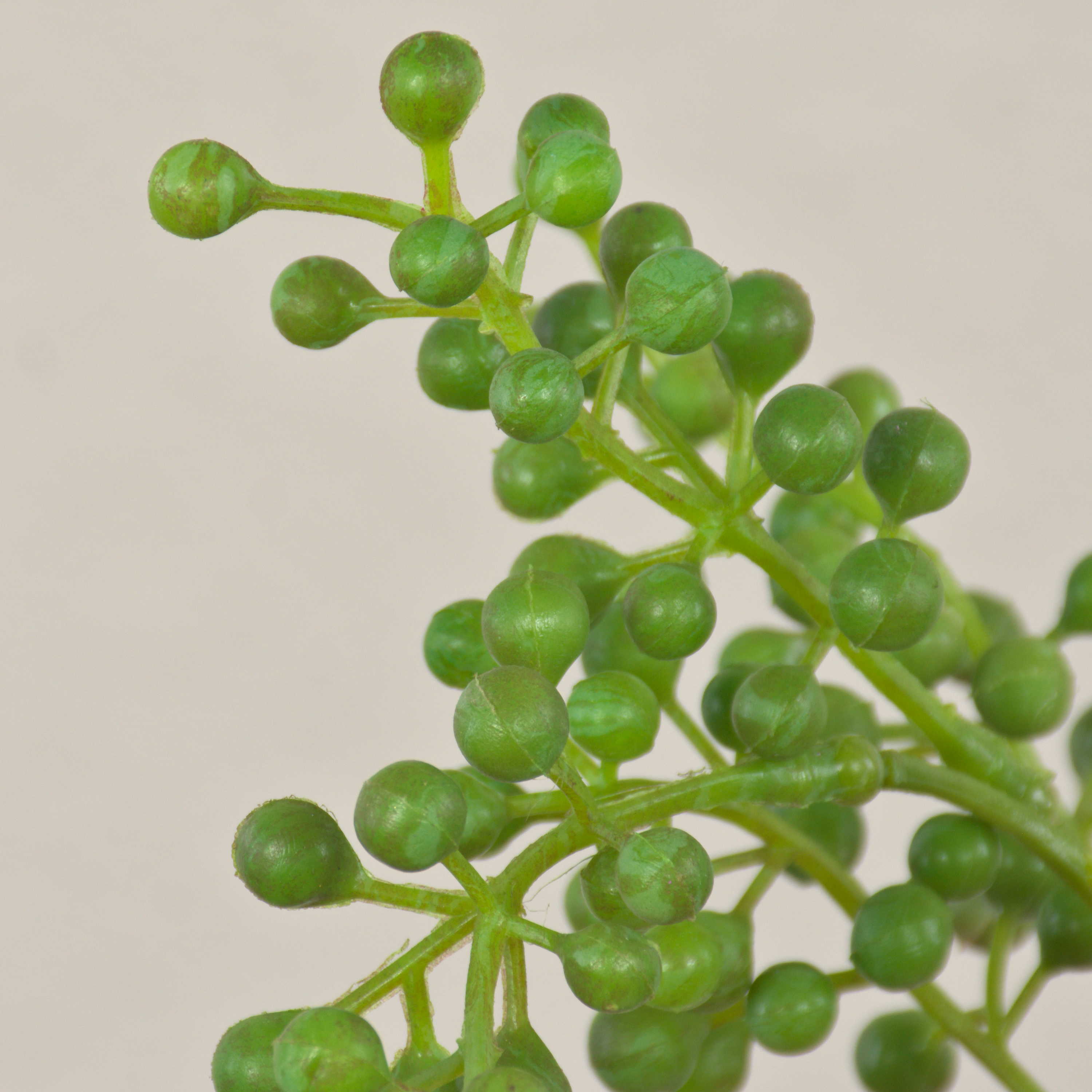 The fake berry branch TEITH in colour green is approx. 40 cm tall. The high-quality workmanship creates a natural look.