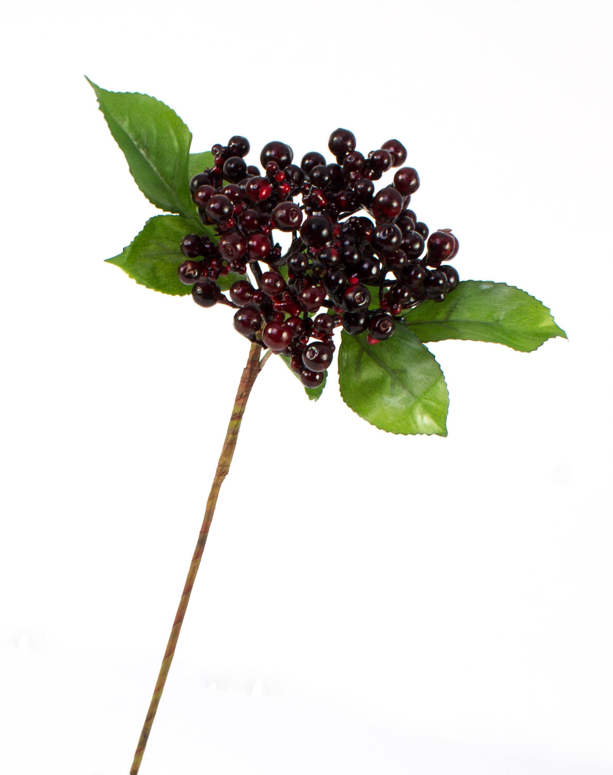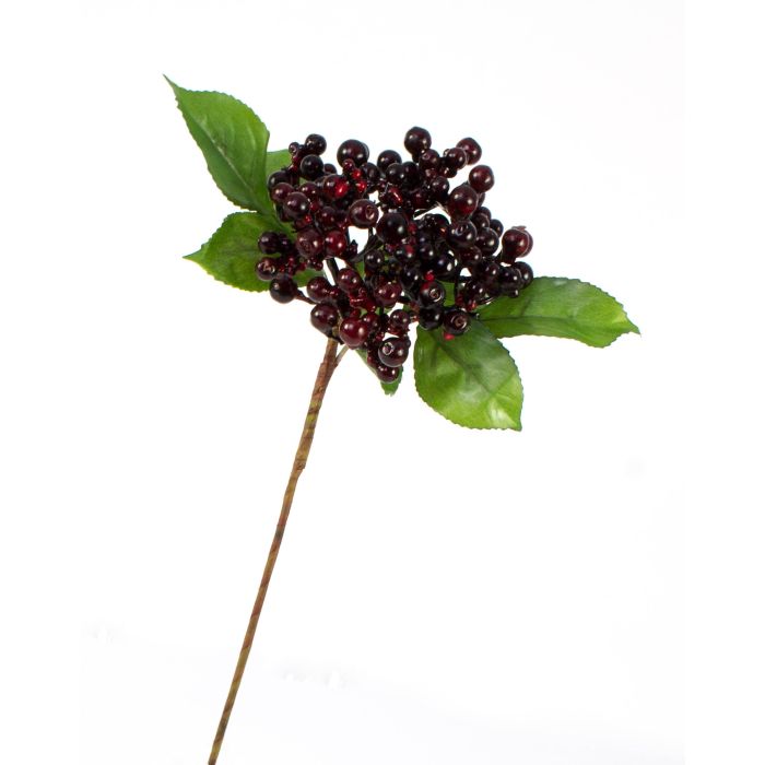 Artificial elderberry branch HELMA with berries, burgundy-red, 12"/30cm